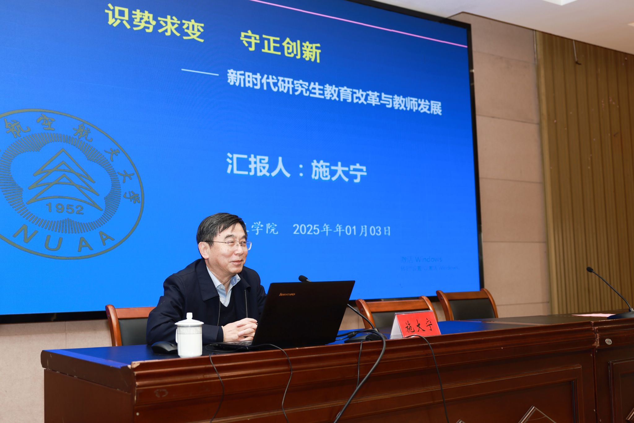 为全面贯彻落实全国研究生教育会议精神,增强研究生导师教书育人的责任感与使命感,提升研究生导师的育人能力,提高研究生培养质量,1月3日下午,贝博研究生导师培训开班仪式暨导师培训会在希望大道校区机械馆报告厅举行。党委副书记、校长邵荣出席并讲话,党委常委、副校长张勤芳主持。国家级教学名师、南京航空航天大学副校长施大宁教授受邀作专题报告。2024年新增研究生导师,研究生院负责人及相关人员、各培养单位分管领导、研究生秘书参加培训。