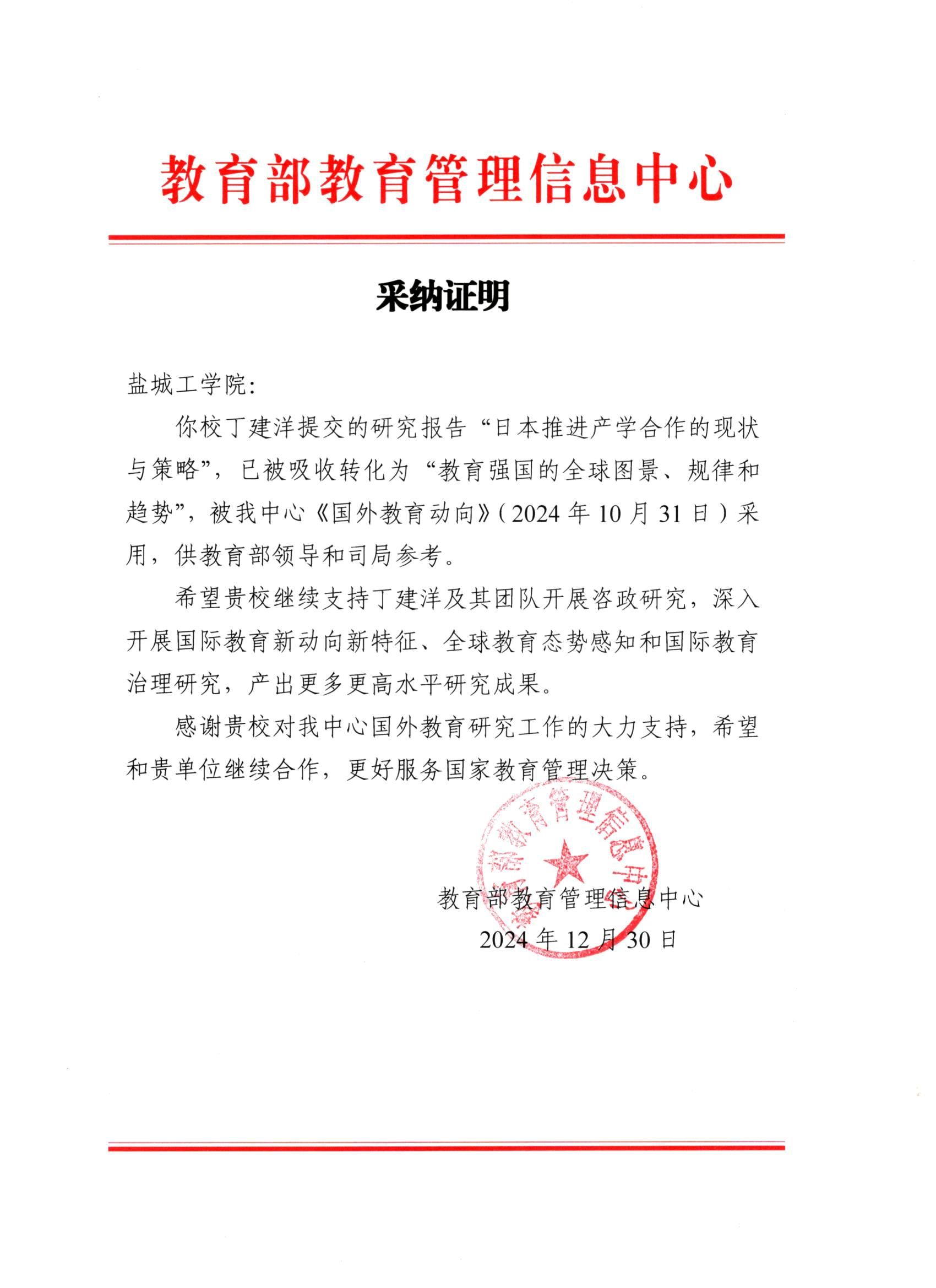 近日,贝博经济管理学院丁建洋老师及其团队撰写的研究报告“日本推进产学合作的现状与策略”,已被吸收转化为“教育强国的全球图景、规律和趋势”,被教育部教育管理信息中心《国外教育动向》(2024年10月31日)采用,供教育部领导和司局参考。