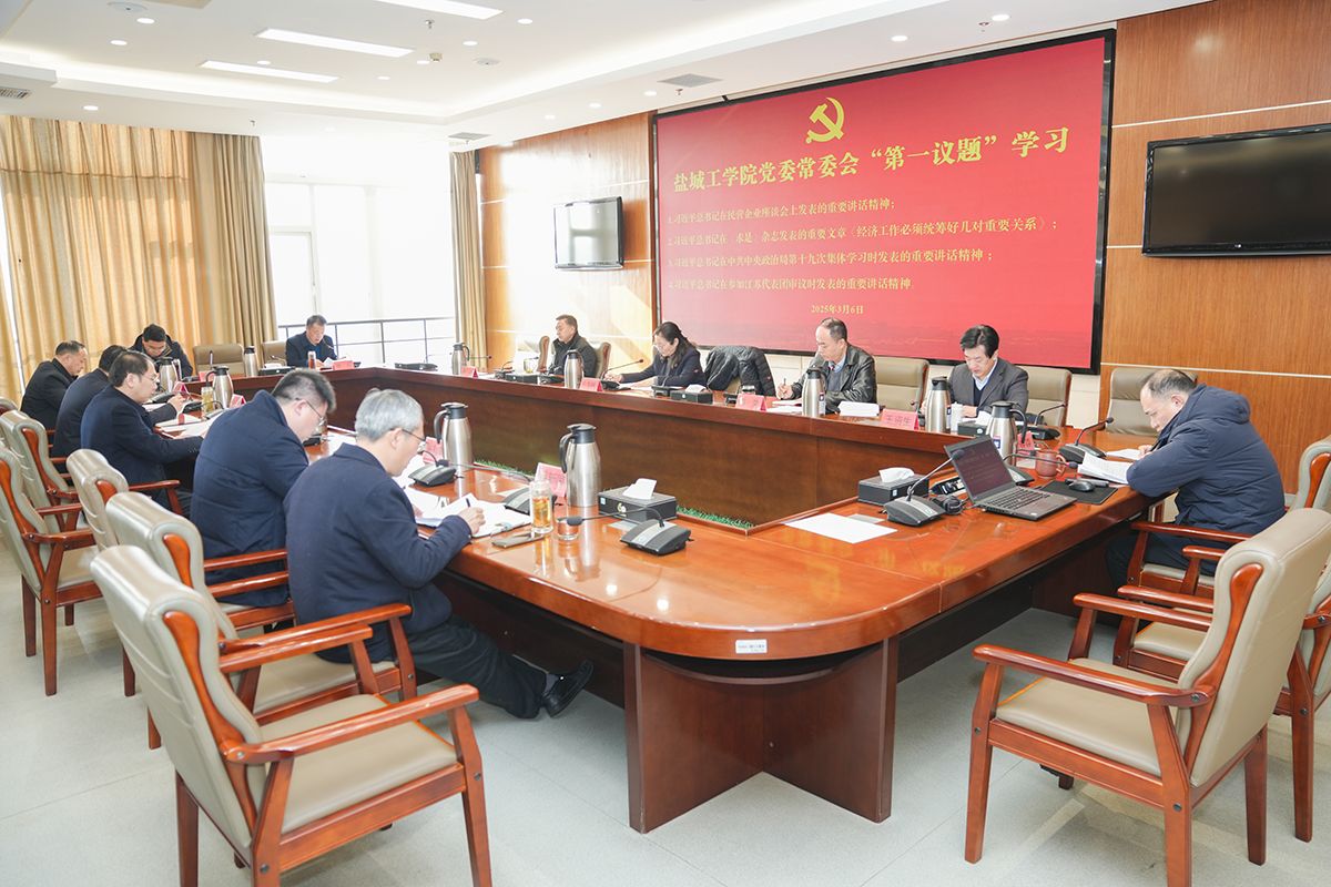 会议学习了习近平总书记在《求是》杂志发表的重要文章《经济工作必须统筹好几对重要关系》,强调,全校上下要深刻领会五个统筹,优化资源配置,主动对接国家沿海发展和长三角一体化两大战略,聚焦新质生产力培育与传统产业升级,深化产教融合、科教融汇;要紧扣特色学科建设,依托盐城沿海生态城市定位,加强绿色低碳技术研发应用,为区域经济高质量发展注入创新动能。