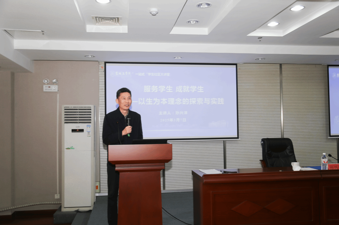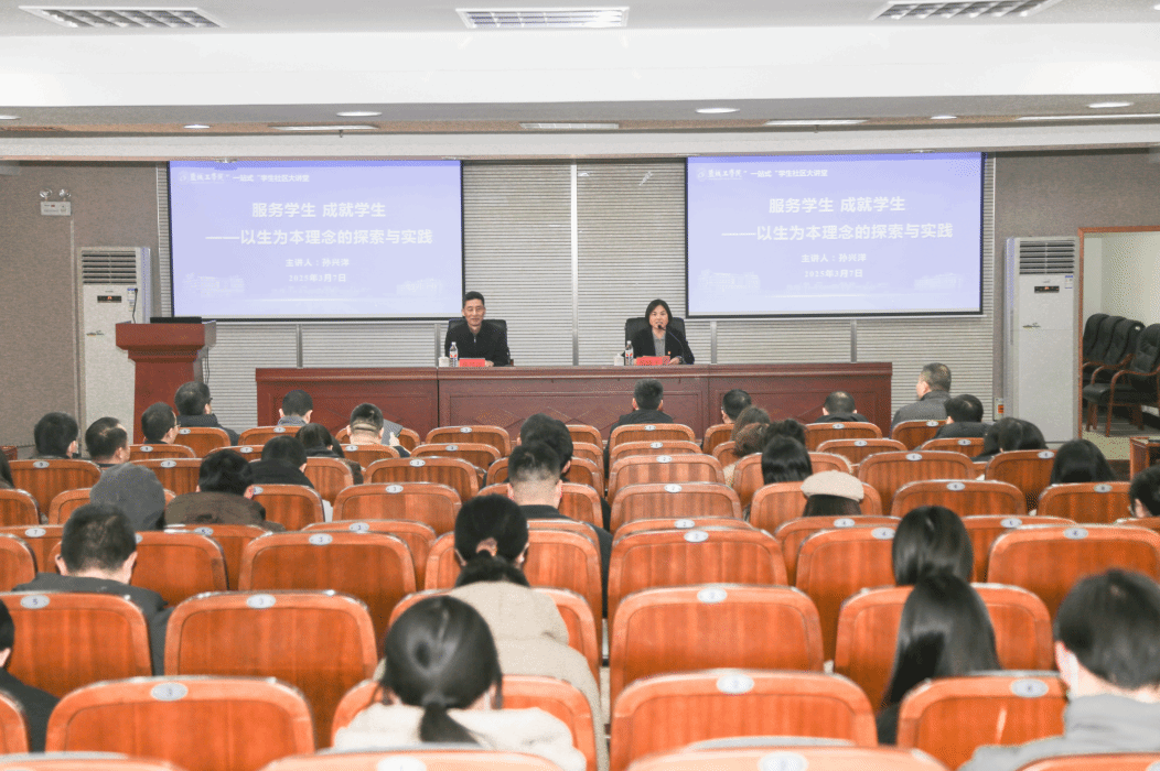 孙兴洋作题为《服务学生 成就学生——以生为本理念的探索与实践》的讲座。他用“我是谁?”“为了谁?”“成为谁?”引发全体辅导员深思,引导大家明确角色定位,明晰服务方位,追求价值品味。他指出,辅导员是思想政治教育工作者,是学生成长成人的引路人和陪伴者,是连接学生情感的人生导师,应着眼青年成长成人目标,树立家国情怀,强化责任担当,扎实学术、锤炼技术、砥砺仁术、获取艺术,着力培养心中有爱、眼中有人、肚中有货、手中有艺的青年人。他结合自身教育实践经验,运用丰富的案例和生动的语言,深入浅出地阐述了辅导员在学生成长成才过程中的重要作用,诠释了“服务学生,成就学生”的育人理念,强调通过政治指导、心理疏导、学习辅导、生活启导、就业引导,走进学生心田,影响学生思想,提升学生境界,成就学生人生。