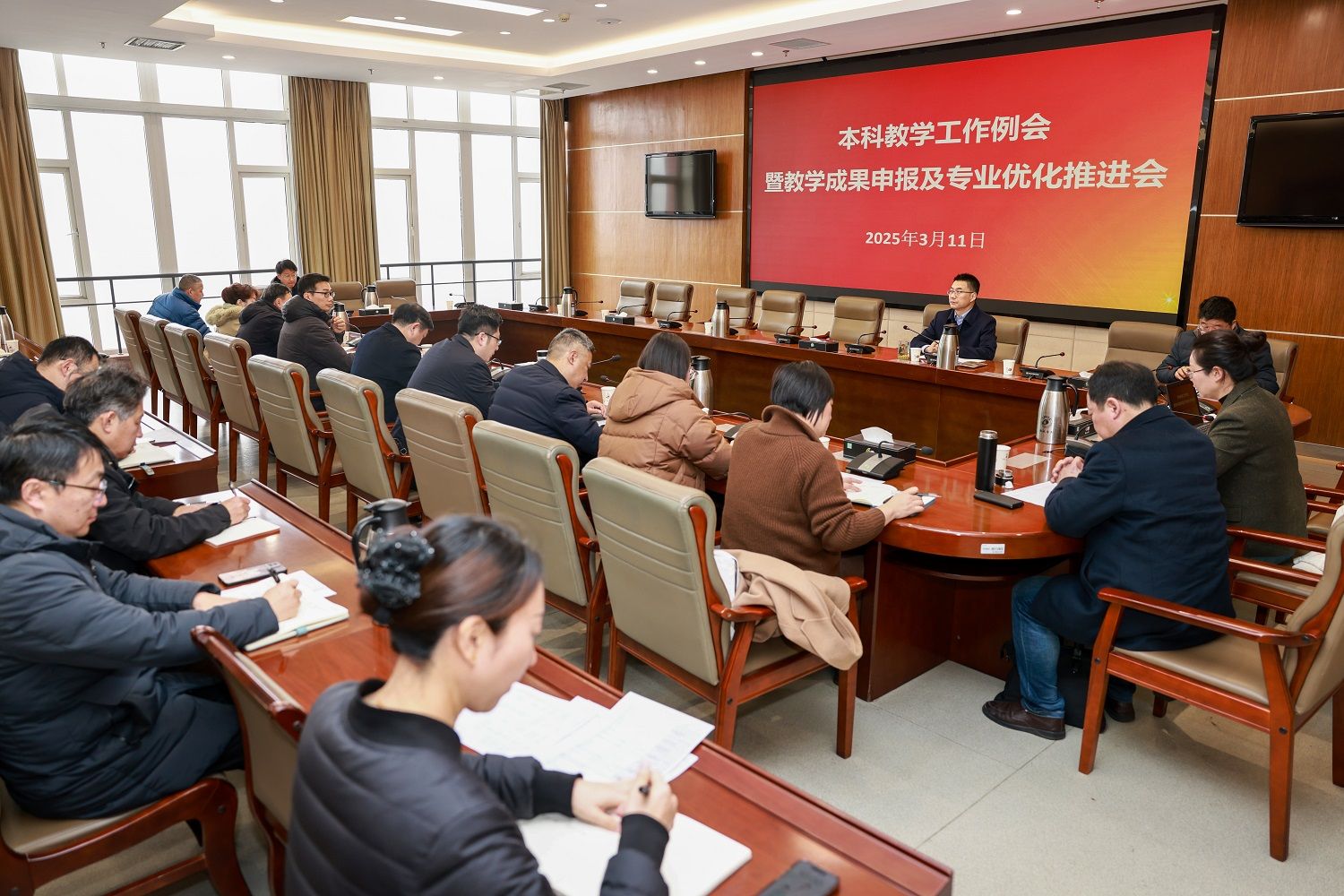 王伟指出,教学成果奖申报工作是2025年学校的重点工作之一。教学成果奖就是按照一条主线,以发现教学问题、提出解决方案、取得教学成果、达到教学目的底层逻辑为依据进行凝练,最终展现推广效果。他强调,要明确目标,不断打磨申报材料;要精心组织,持续改进提升申报书质量;要加强团队合作,打造高水平的教学成果。同时,王伟对各学院在专业优化上取得的成绩给予肯定,强调各学院要结合专业评估排名、录取调剂率、毕业落实率等多方数据,对存在问题进行全面客观分析,要抓住重点,整体推进,要培育学科专业特色优势,给出科学合理的专业优化调整方案。