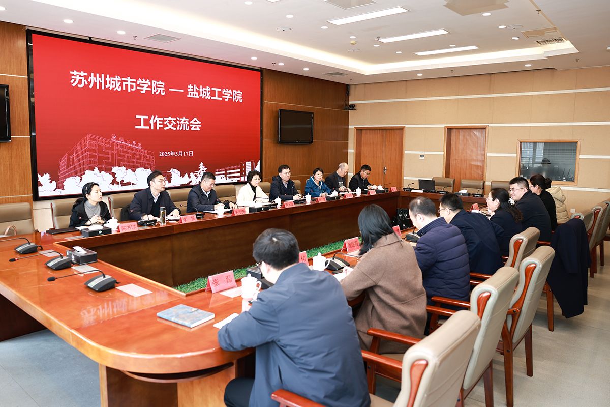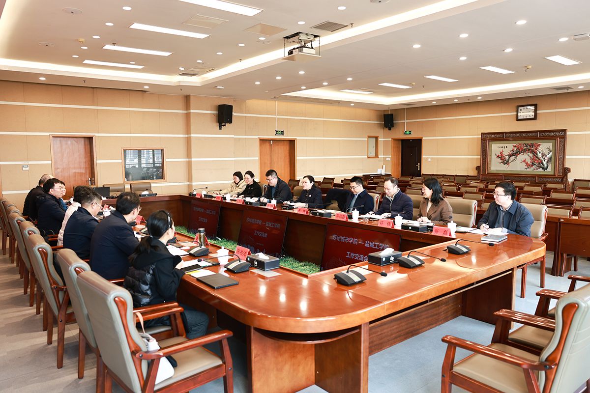 方海林代表学校对周玉玲一行的到来表示欢迎,并介绍了学校的历史沿革、办学特色、办学成果等基本情况。她指出,苏州与盐城同处长三角“朋友圈”,苏州城市学院是长三角地区高等教育改革的先行者,两校的发展使命与区域战略高度契合,希望通过本次交流,进一步增进友谊、互学互鉴,在共同服务长三角一体化中实现更好发展。