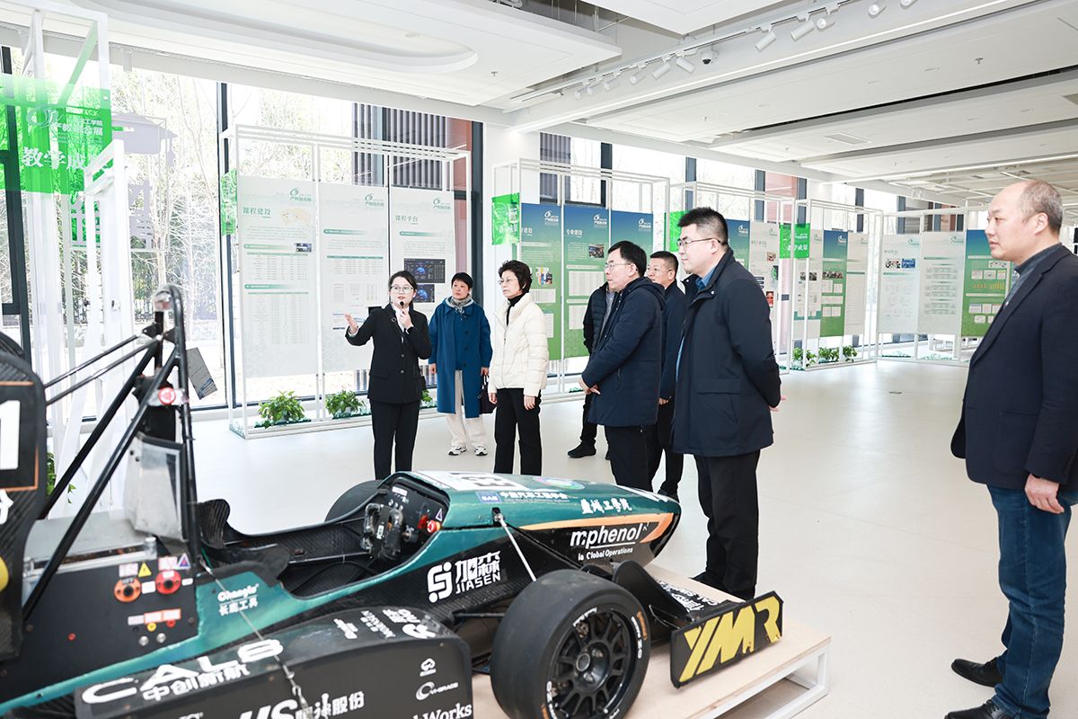 会前,周玉玲一行参观了贝博产教融合综合成果展。