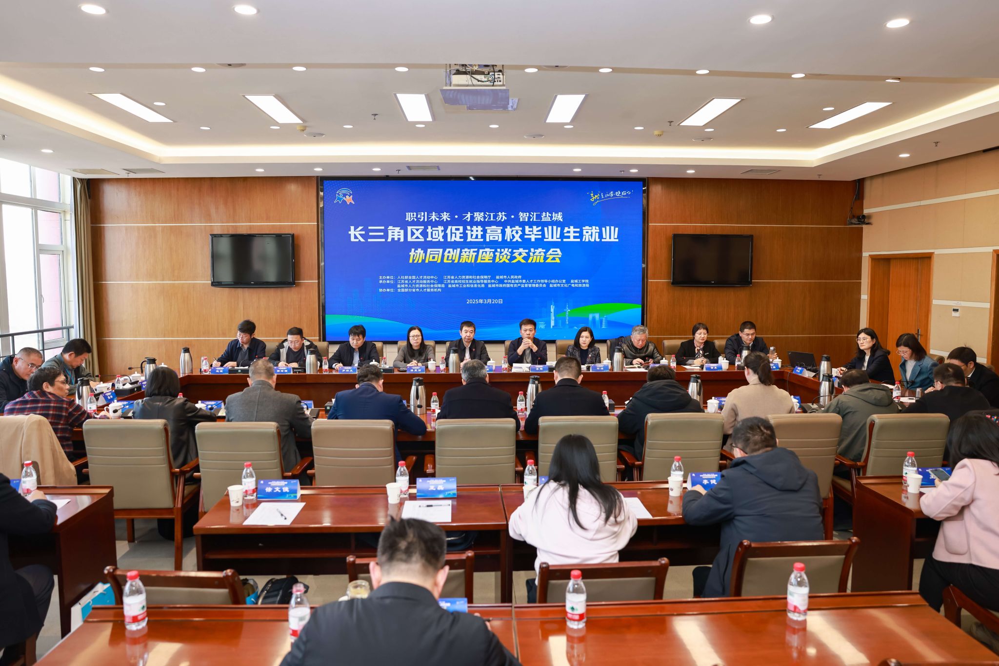 与招聘会同步举办的长三角区域促进高校毕业生就业协同创新交流座谈会在贝博行政楼9楼会议室召开。来自沪苏浙皖的20余位人社部门负责人、企业代表及高校专家,齐聚盐工,共同探讨“区域协同创新与人才共享”“先进制造业与高校毕业生就业”。会议达成共识,将建立长三角先进制造业人才需求动态数据库,推动实习就业资源共享,为产业转型升级注入新动能。