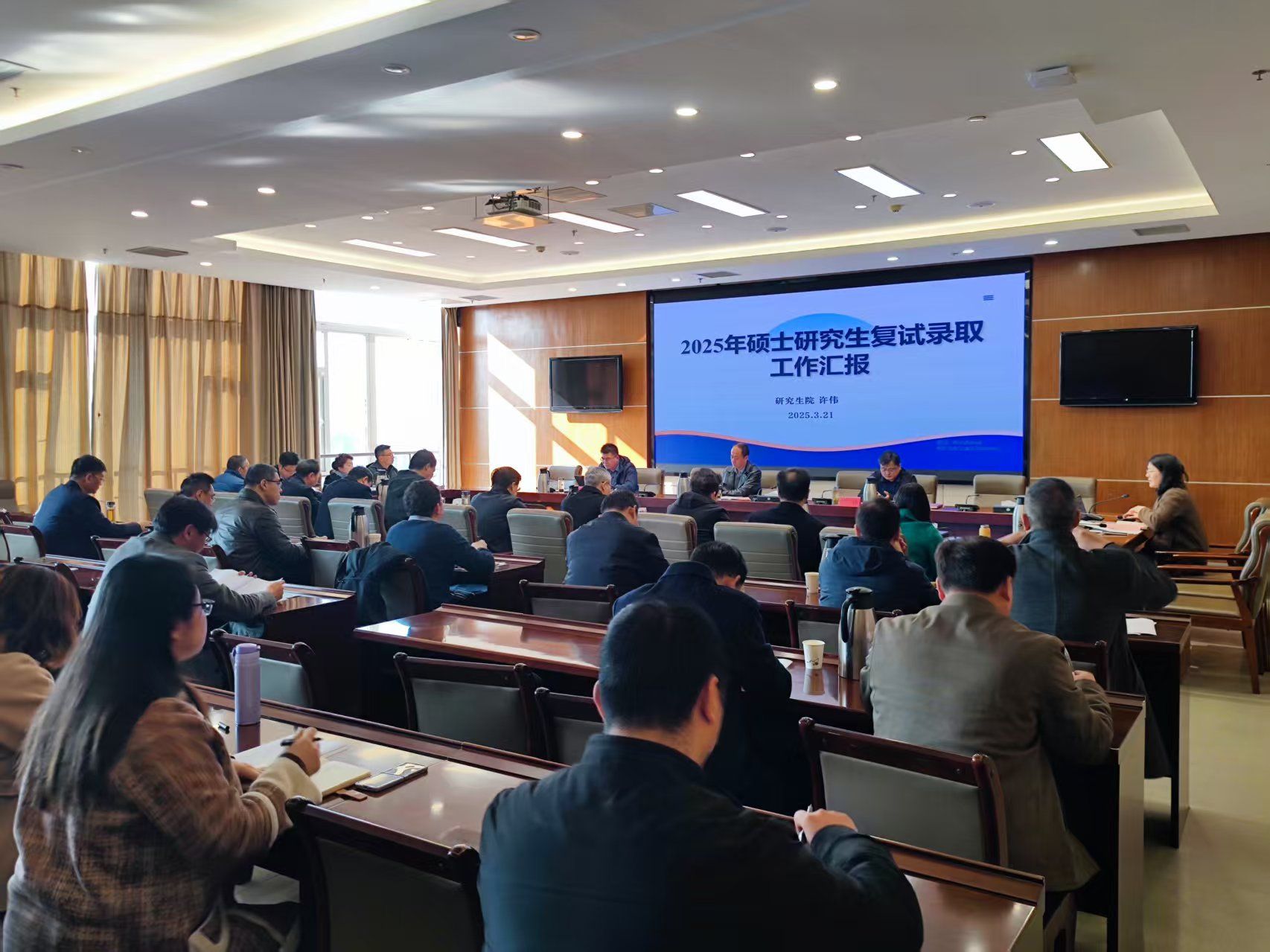 研究生院院长许伟传达了江苏省研究生复试录取工作会议精神,重点汇报了学校2025年硕士研究生复试录取工作办法。