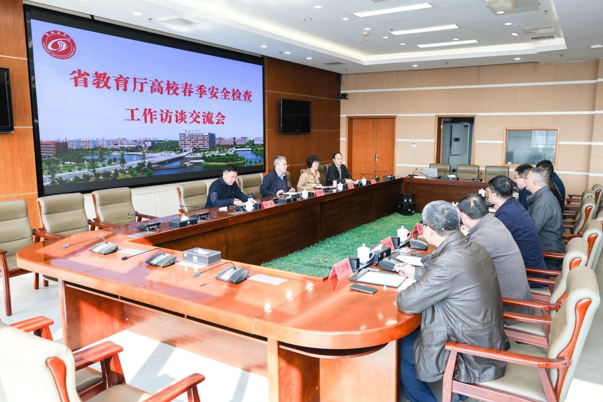 付兆峰对省教育厅高校春季安全检查工作的重点内容进行了解读传达,对具体要求作了部署。检查组与参加访谈交流的相关部门就心理健康监测、学业预警、学生实习实训、危化品仓库管理及固废处置、食品安全、消防安全、电动车治理、防范电信网络诈骗等方面进行了深入交流,交换工作经验。