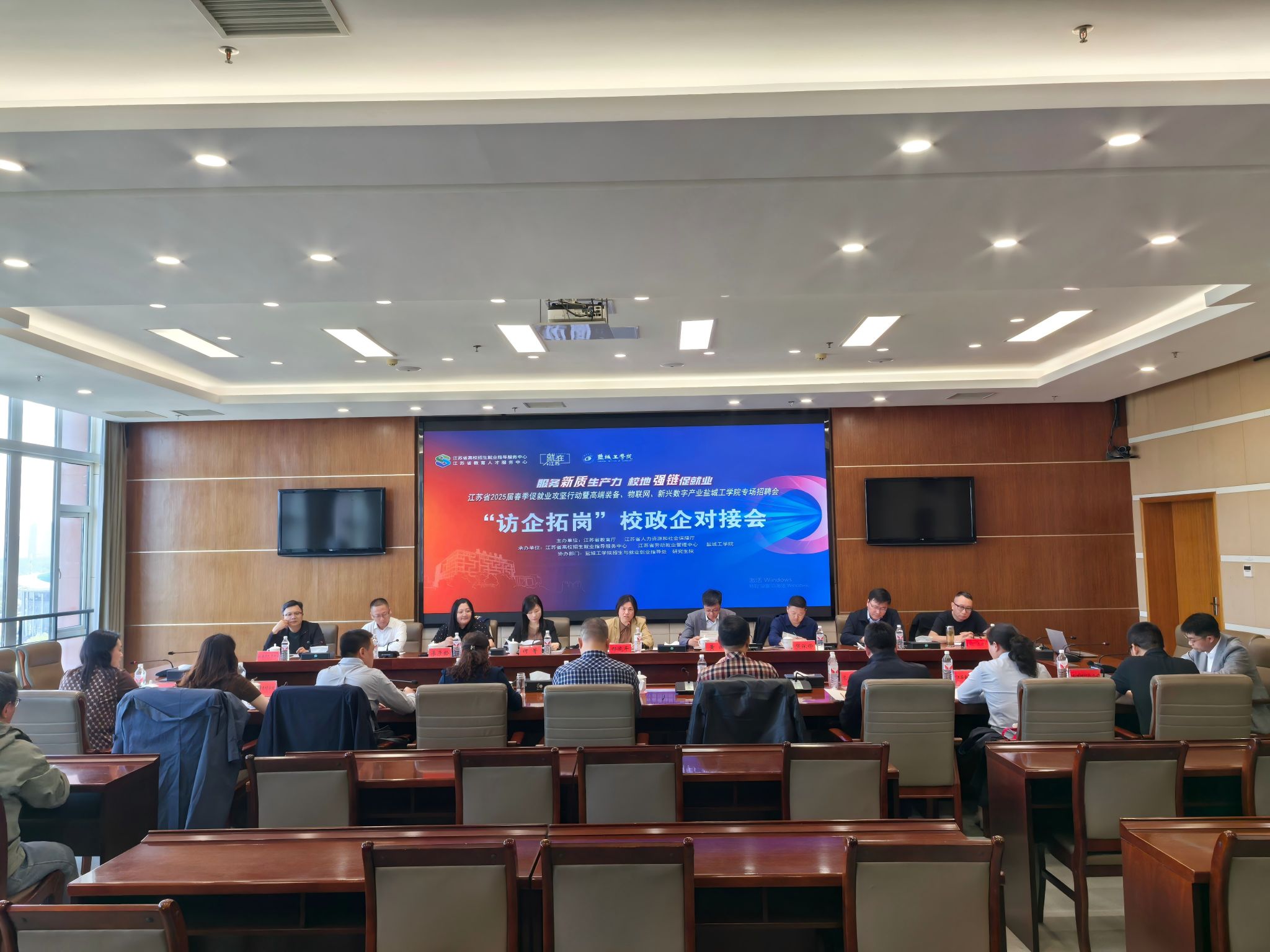 与招聘会同步举办的“访企拓岗”政校企对接会在贝博行政楼9楼会议室召开,邢晓平主持。来自镇江、南通、盐城亭湖等人社部门负责人,江苏金韦尔机械有限公司、盐城和阳智能电梯部件有限公司、恩梯梯数据(中国)信息技术有限公司企业代表及驻盐高校就业部门主要负责人,齐聚盐工,三方联动,共促产业与人才双向奔赴。三方围绕政校企合作模式、人才培养方案以及实习实训基地建设等关键议题,进行了深入且全面的交流探讨,并达成了初步共识。