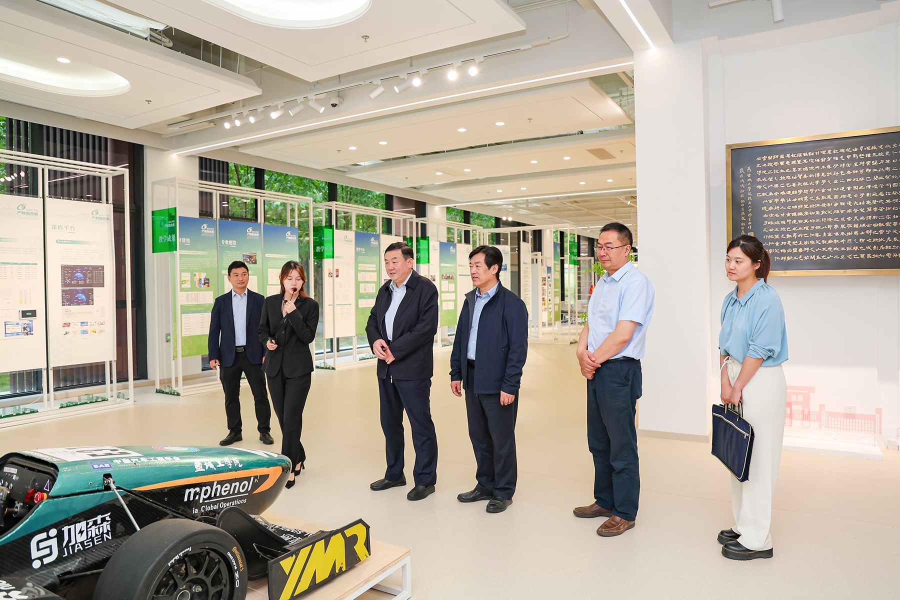 王资生陪同专家组一行参观了产教融合大楼成果展厅,向专家组介绍学校的历史沿革、学科专业设置、师资力量以及人才培养成果。王资生向专家汇报学校军训工作和军事理论教学工作情况。他指出,学校高度重视国防教育工作,将其作为必修课程纳入人才培养方案,通过制度化、多元化的军训实践,形成了军训工作和军事理论课程教学的工作规范。他表示,学校下一步将积极整合军队资源、强化师资专业化建设、深化国防教育内涵,不断提升军训实效和军事理论教育效果。