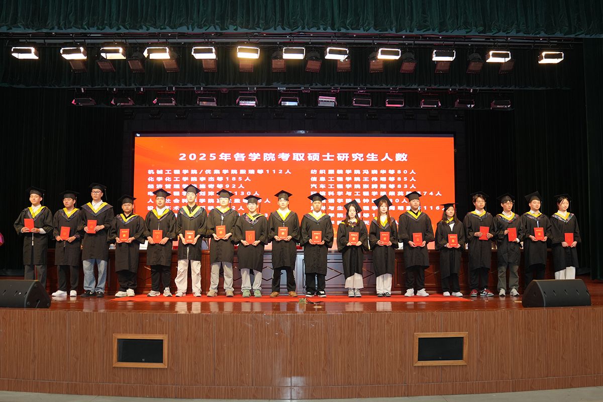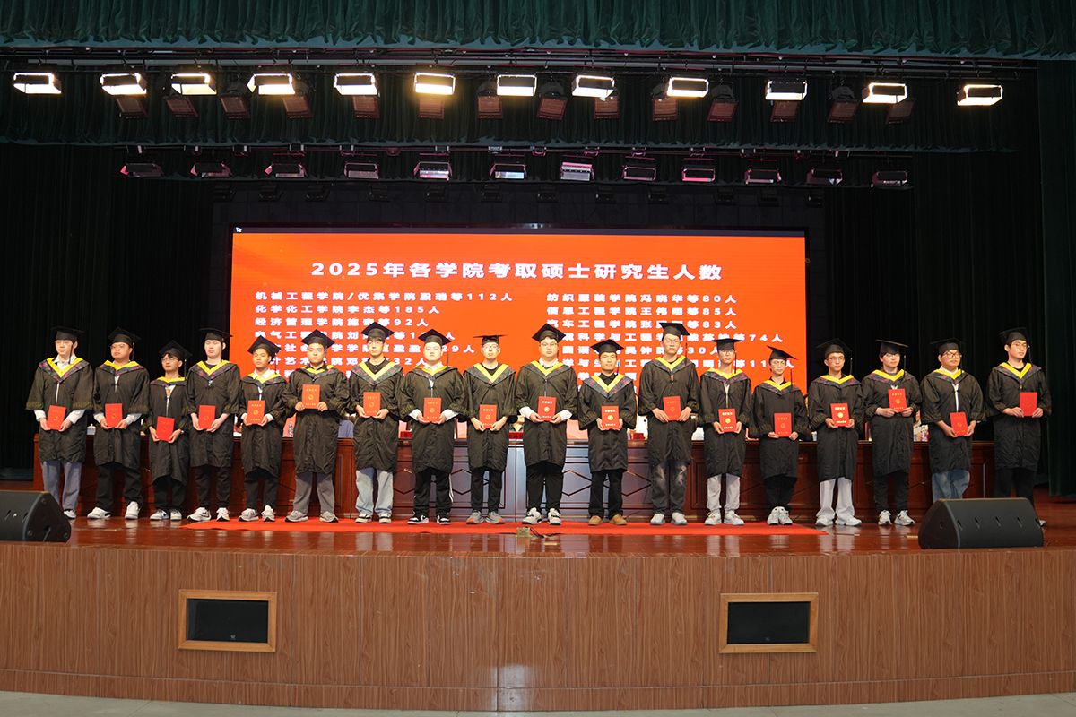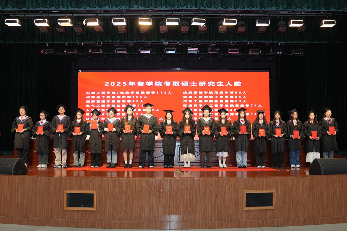 薛浩宣读《关于表彰2024年招生宣传工作先进集体和先进个人的决定》,王资生宣读《关于表彰2024年就业工作先进集体和先进个人的决定》,王伟宣读《关于表彰2025年考研成绩突出同学的决定》,陈伟宣读《关于表彰2025年考研工作先进集体和先进个人的决定》。会议向2025年考研成绩突出的同学颁发荣誉证书。