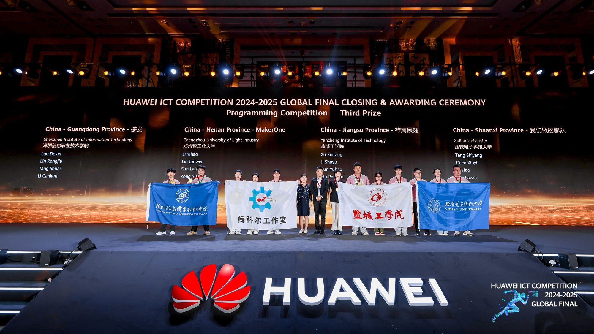 近日,华为ICT大赛2024-2025全球总决赛闭幕式暨颁奖典礼在深圳举行,贝博信息工程学院胡鹏辉、季书宇和材料科学与工程学院孙宇昊三位同学组成的“雄鹰展翅”队获编程赛三等奖,实现贝博参加全球比赛的新突破。