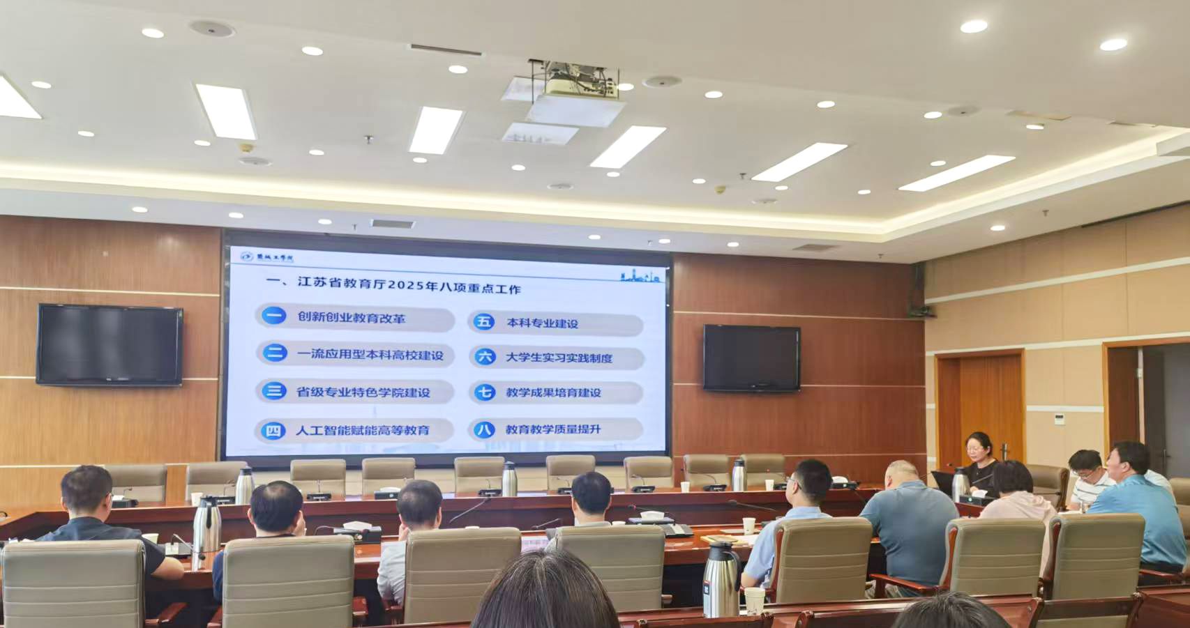 会上,教务处处长余晓红汇报了2025年春学期教学工作总结。她通报并解读了江苏省教育厅2025年开展的创新创业教育改革、一流应用型本科高校建设、省级专业特色学院建设、人工智能赋能高等教育、本科专业建设、大学生实习实践制度、教学成果培育建设、教育教学质量提升等八项重点工作,并从这八个方面梳理了贝博春学期教学工作成效,并提出暑期及秋学期重点推进工作。她指出,教务处将围绕年度重点工作、省一流应用型本科高校建设、省委巡视反馈意见整改等有序开展工作,为学校本科教育教学高质量发展提供有力支撑。副处长周天池部署了近期人才培养、教学研究、专业建设、产业学院建设等具体工作。副处长孔剑锋通报了近期教学管理中期末考试、学位审核、课务安排等出现的相关问题,并强调了工作注意事项及第六届教创赛的组织安排情况。创新创业学院院长李爱国重点汇报了春学期学科竞赛工作成效及秋学期工作思路和谋划等。