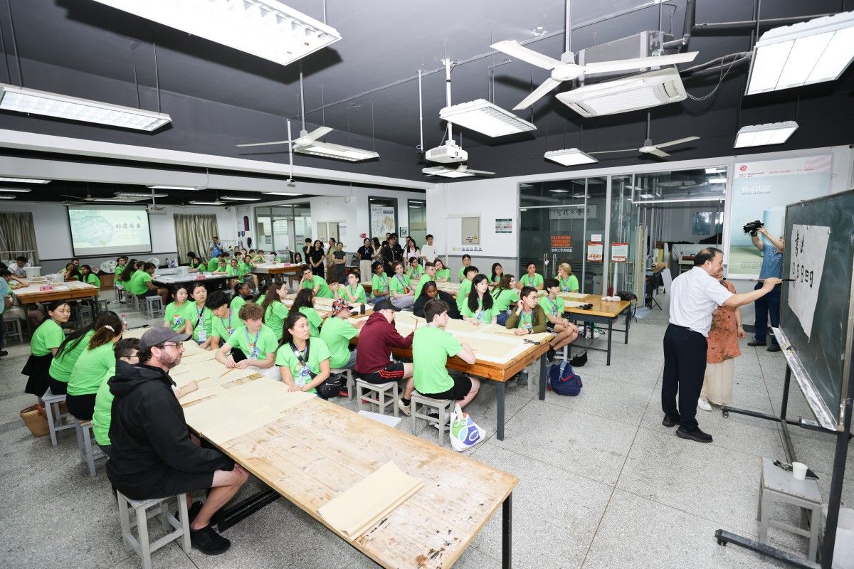 之后,美国师生们来到贝博设计艺术学院。在这里,他们体验了我国非物质文化遗产漆扇的制作工艺。现场美国师生们在贝博专业老师的指导下,开启了漆扇制作之旅,挑扇面、选漆料、晕染、晾干,每一步都浸透着对中华传统文化的传承与敬畏。此外,他们还体验了我国传统书法,了解了中国书法的历史,认识了笔、墨、纸、砚文房四宝,写下了他们最爱的中国字。