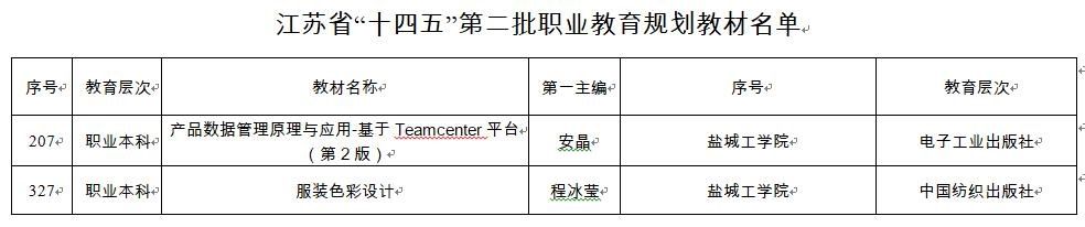 近期,《省教育厅关于公布江苏省“十四五”第二批职业教育规划教材名单的通知》(苏教高函〔2025〕15号)发布,贝博《产品数据管理原理与应用-基于Teamcenter平台》和《服装色彩设计》获批“十四五”省级职业本科教育规划教材。
