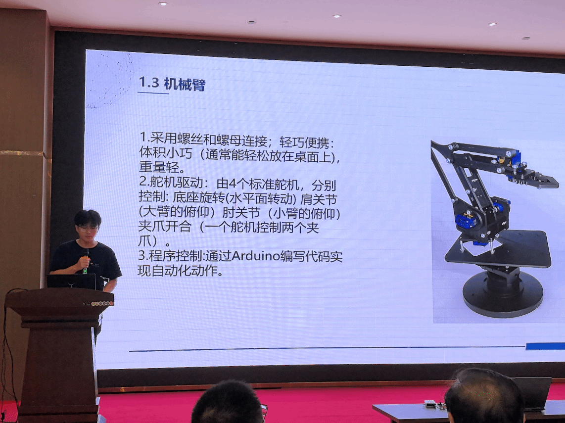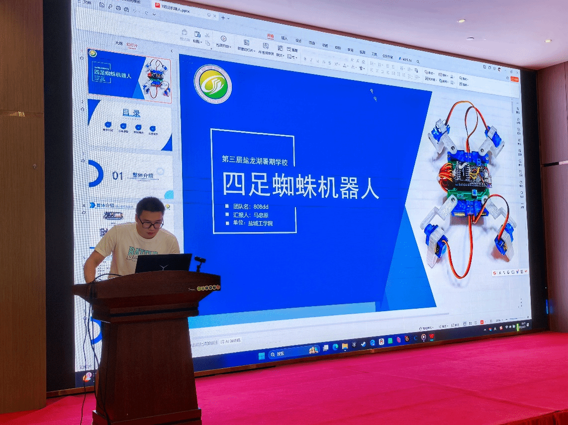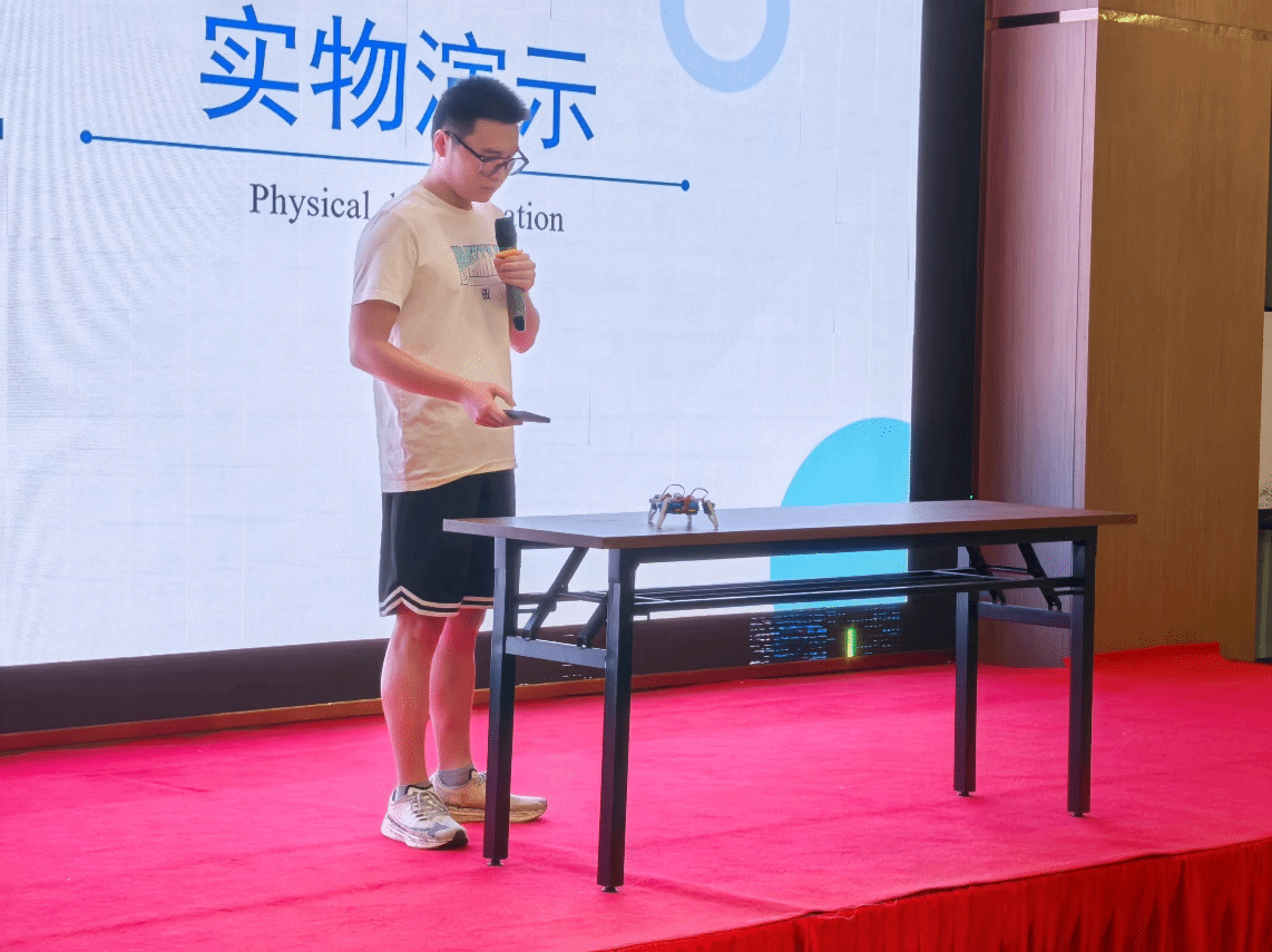 在结业汇报环节,盐粒子队、猛攻队、希望队、团结队等8支队伍依次登台,通过PPT汇报和项目路演的形式,全面展示了在暑期学校期间取得的学习与研究成果。围绕“AI机器人与智能系统”的主题,项目涵盖了智能机器人控制、工业物联网、机器视觉、数字孪生等前沿方向。学员们将理论知识与实践深度结合,其作品的创新性、完整性和应用潜力赢得了现场观众的阵阵掌声。