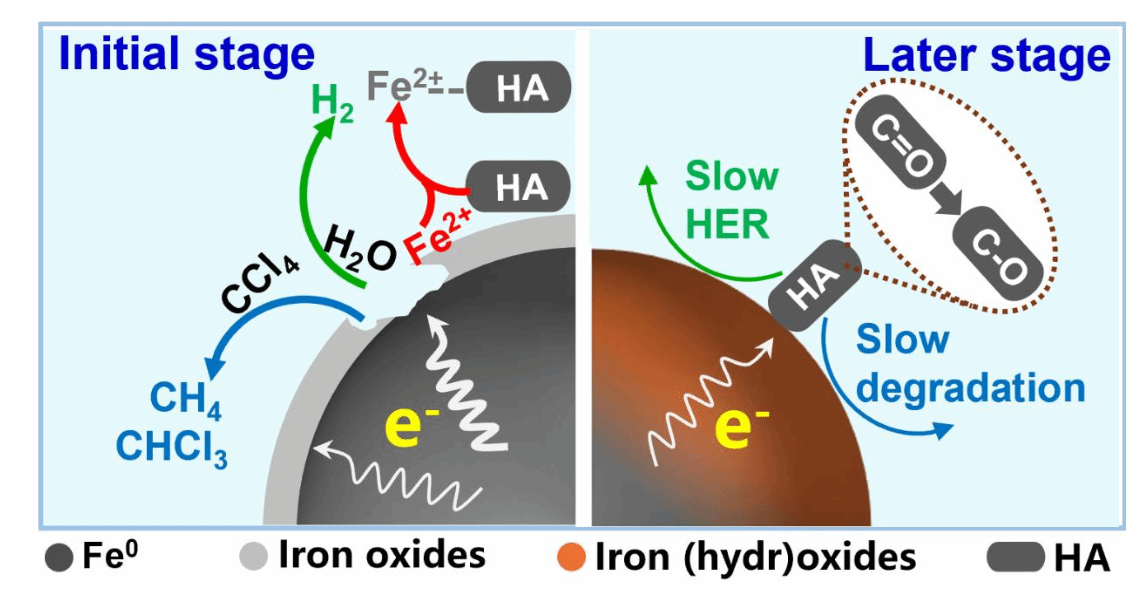 本研究表明,污染场地修复过程中nZVI投加剂量必须考虑特定地质环境中有机质含量,以实现ZVI快速的初始脱氯和持续降解能力。未来研究需要进一步探索ZVI颗粒的表面改性策略以减轻有机质诱导的电子耗尽,同时保留有益的Fe2+-HA络合效应,可能通过靶向涂层技术或开发抗HA的nZVI复合改性材料。