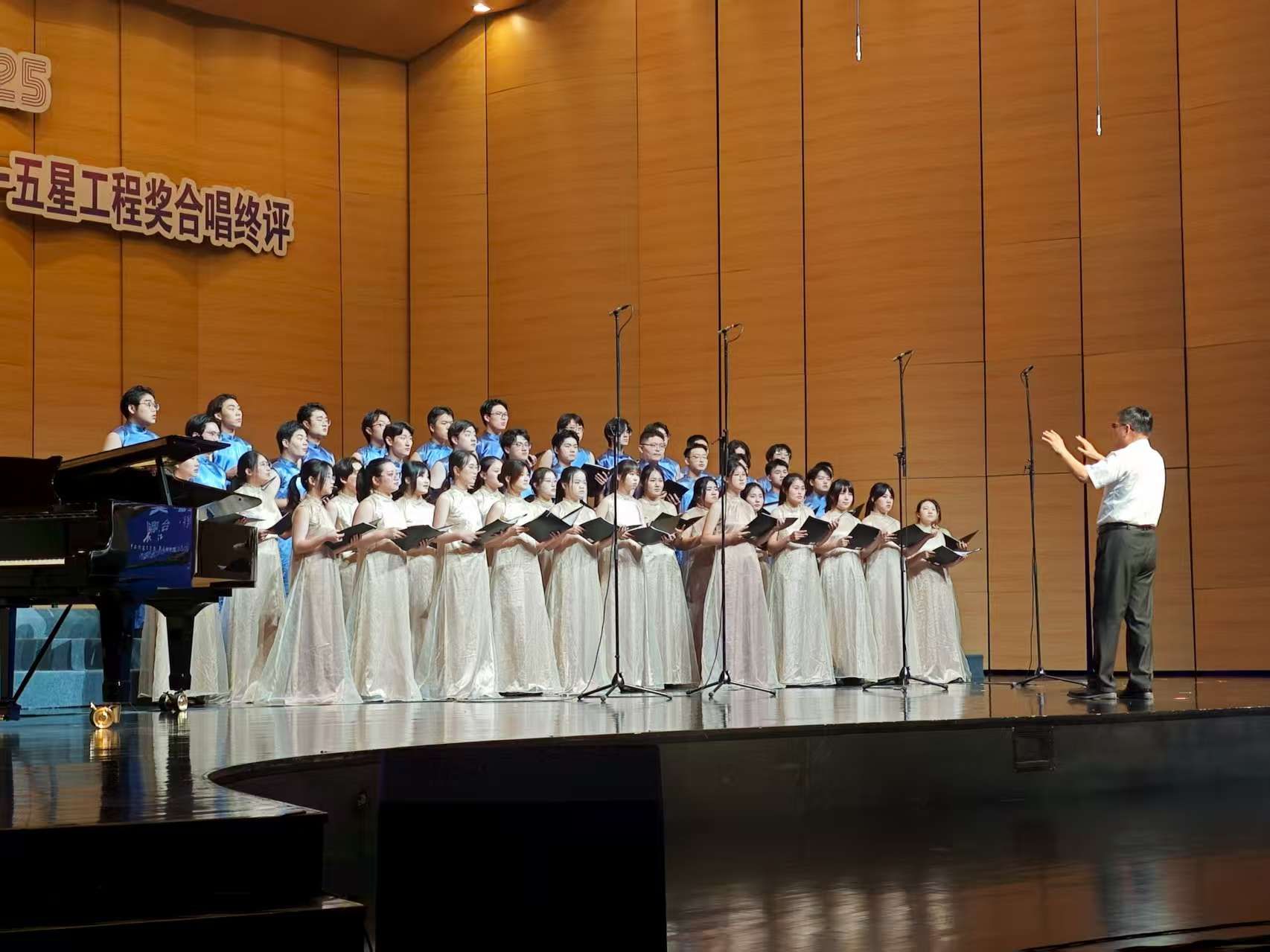 本次评选全程分初评和综评两大环节,每一轮都考验着团队的综合实力。 在“五星工程奖”盐城市初评中,“梦之声”合唱团凭借干净通透的声音、色彩明确的和声与富有张力的舞台表现,最终以全市第一名的优异成绩强势晋级全省终评,为冲击省级最高奖项筑牢根基。初评的胜利并未让合唱团成员停下脚步。在指导教师沈小锋的悉心带领下,团队迅速投入到高强度的备战中,从发声技巧的精准校准到情感表达的细腻打磨,每一个细节都力求完美,合唱团成员们克服学业与训练的双重压力,以 “精益求精” 的态度投入每日训练,评选前学校特别邀请到业界权威 —— 原江苏省歌舞团指挥、国家一级指挥、国家一级作曲马熙林先生亲临指导,最终“梦之声”合唱团以稳定卓越的发挥、饱含深情的演绎,成功将 “五星工程奖” 收入囊中,让学校的艺术教育成果在省级舞台上大放异彩。