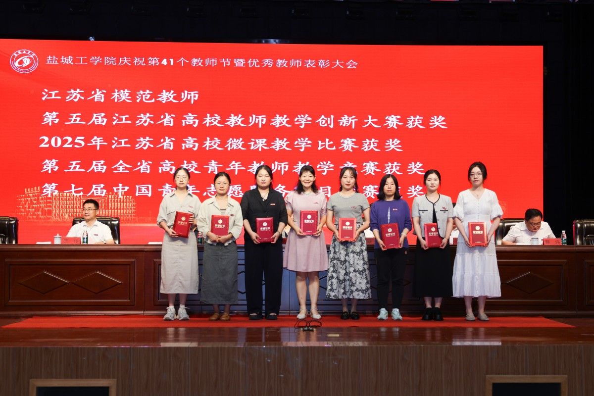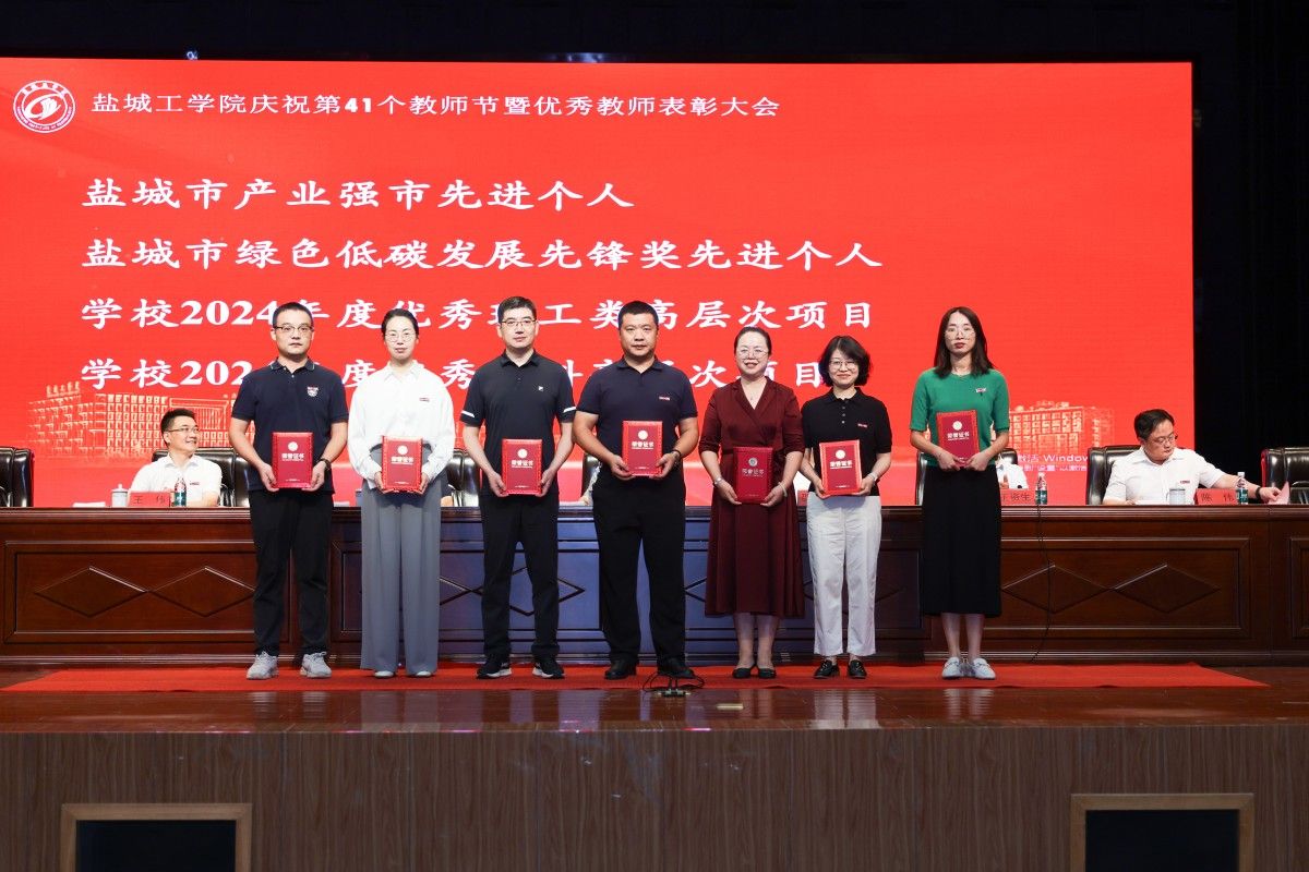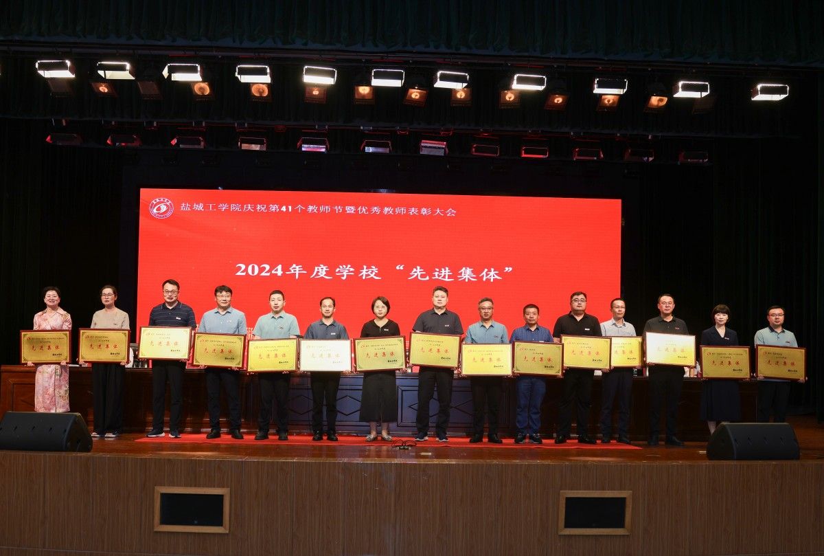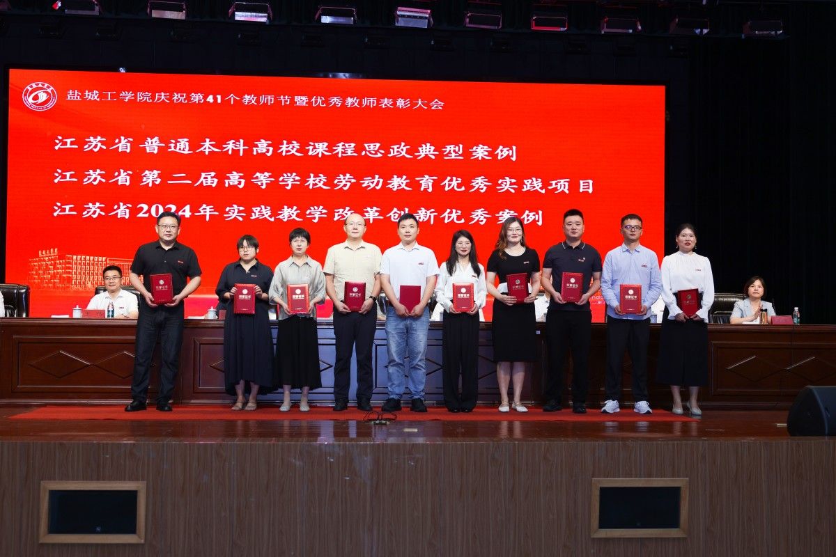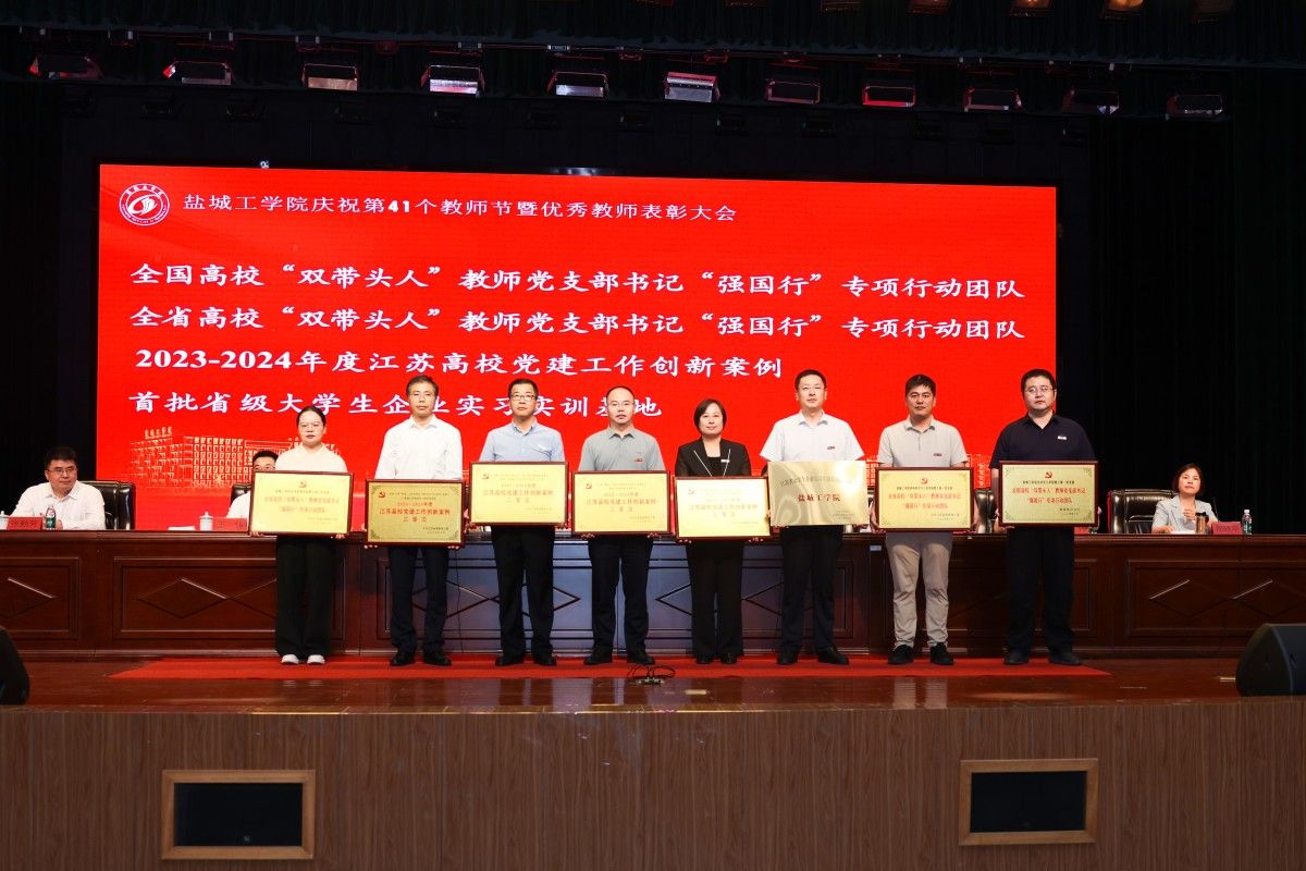 会议对全国高校“双带头人”教师党支部书记“强国行”专项行动团队、全省高校“双带头人”教师党支部书记“强国行”专项行动团队、2023-2024年度江苏高校党建工作创新案例、首批省级大学生企业实习实训基地、江苏省模范教师、第五届江苏省高校教师教学创新大赛获奖、2025年江苏省高校微课教学比赛获奖、第五届全省高校青年教师教学竞赛获奖、第七届中国青年志愿服务项目大赛获奖、江苏“十四五”普通高等教育本科省级规划教材、第二批“十四五”职业教育江苏省规划教材、2024年度江苏省研究生优质教学资源、江苏省普通本科高校课程思政典型案例、江苏省第二届高等学校劳动教育优秀实践项目、江苏省2024年实践教学改革创新优秀案例、2024-2025学年国家级学科竞赛优秀指导教师、硕士研究生省级以上竞赛获奖优秀指导教师、江苏省优秀硕士学位论文优秀指导教师、江苏省本科优秀毕业设计(论文)优秀指导教师、盐城市产业强市先进个人、盐城市绿色低碳发展先锋奖先进个人、学校2024年度优秀理工类高层次项目、学校2024年度优秀文科高层次项目、学校2024年度优秀文科科研创新团队、学校2024年度优秀文科省部级基地、学校2024年度优秀服务地方优秀智库、2024年度学校“先进集体”、2024年度学校“教学工作先进集体”、2024年度学校“优秀校级科研机构”、2024年度学校“先进工作者”、2024-2025学年学校“优秀教师”、2023-2024学年学校“最受学生欢迎的教师”、2024年度学校“优秀教务工作者”、2024年度学校“优秀辅导员”等进行表彰。校领导为获奖的集体和教师代表颁奖。
