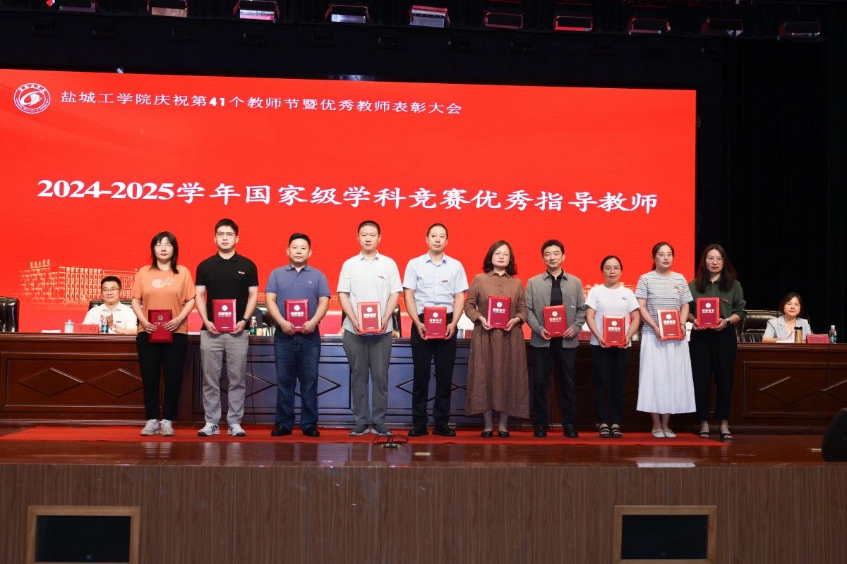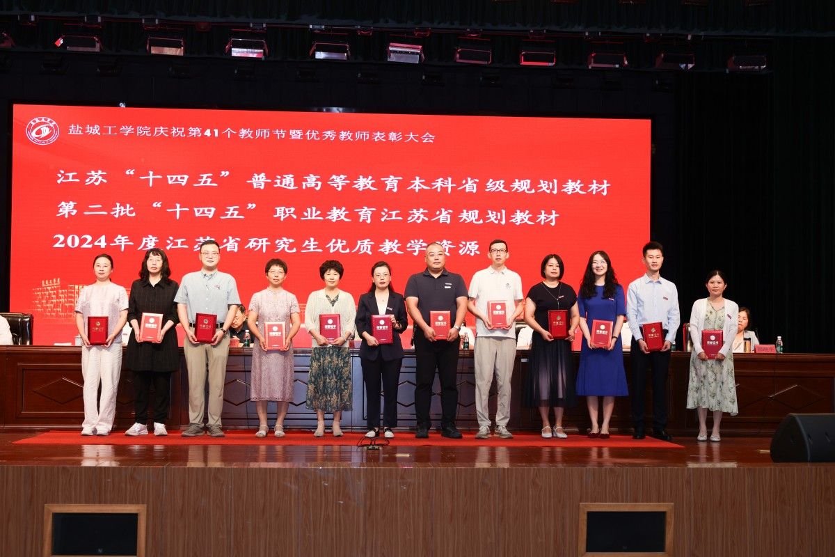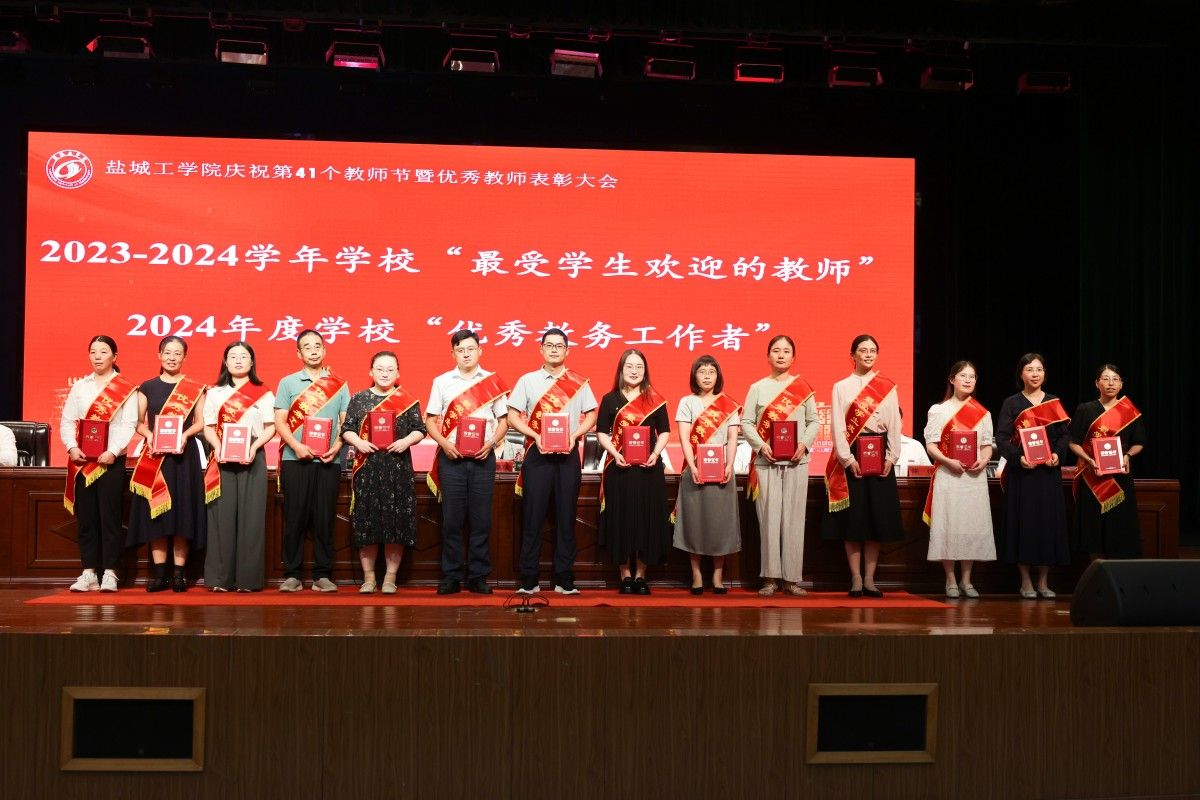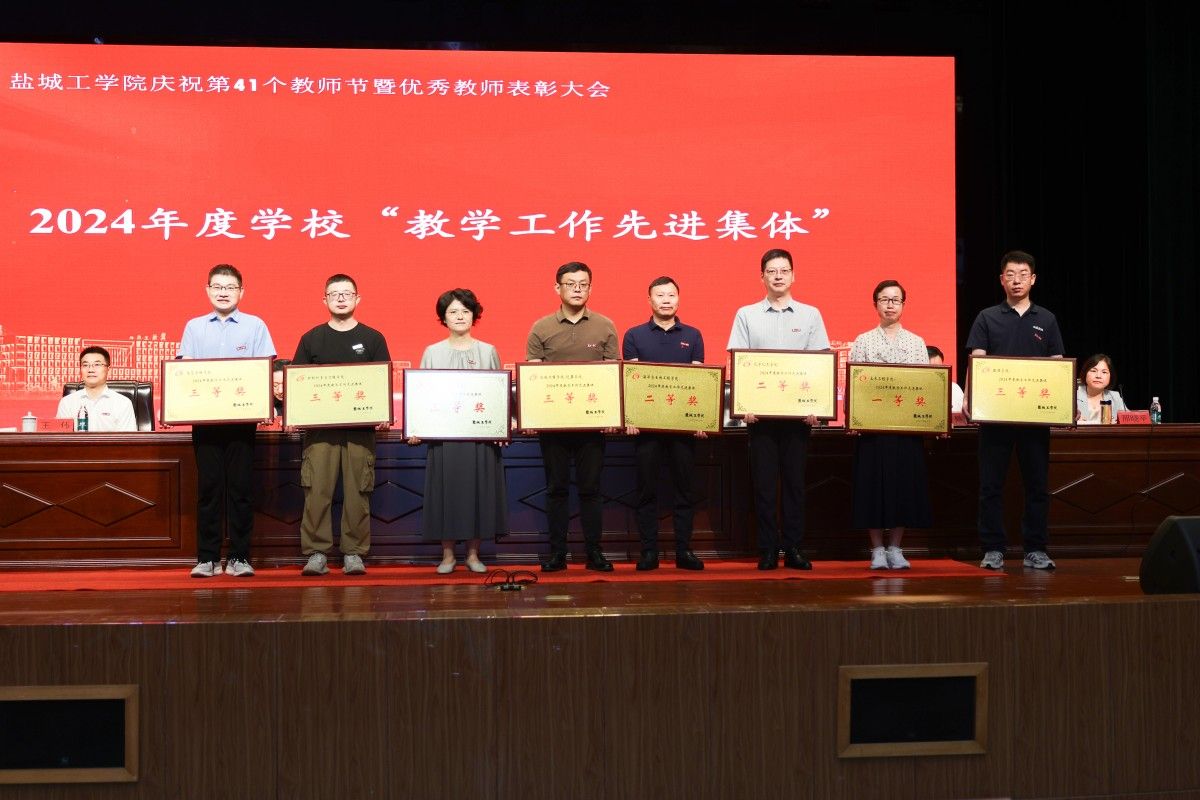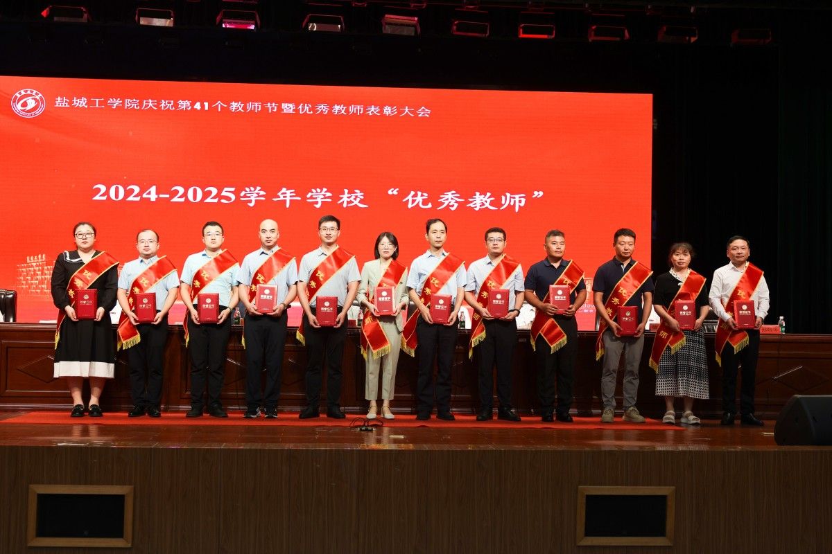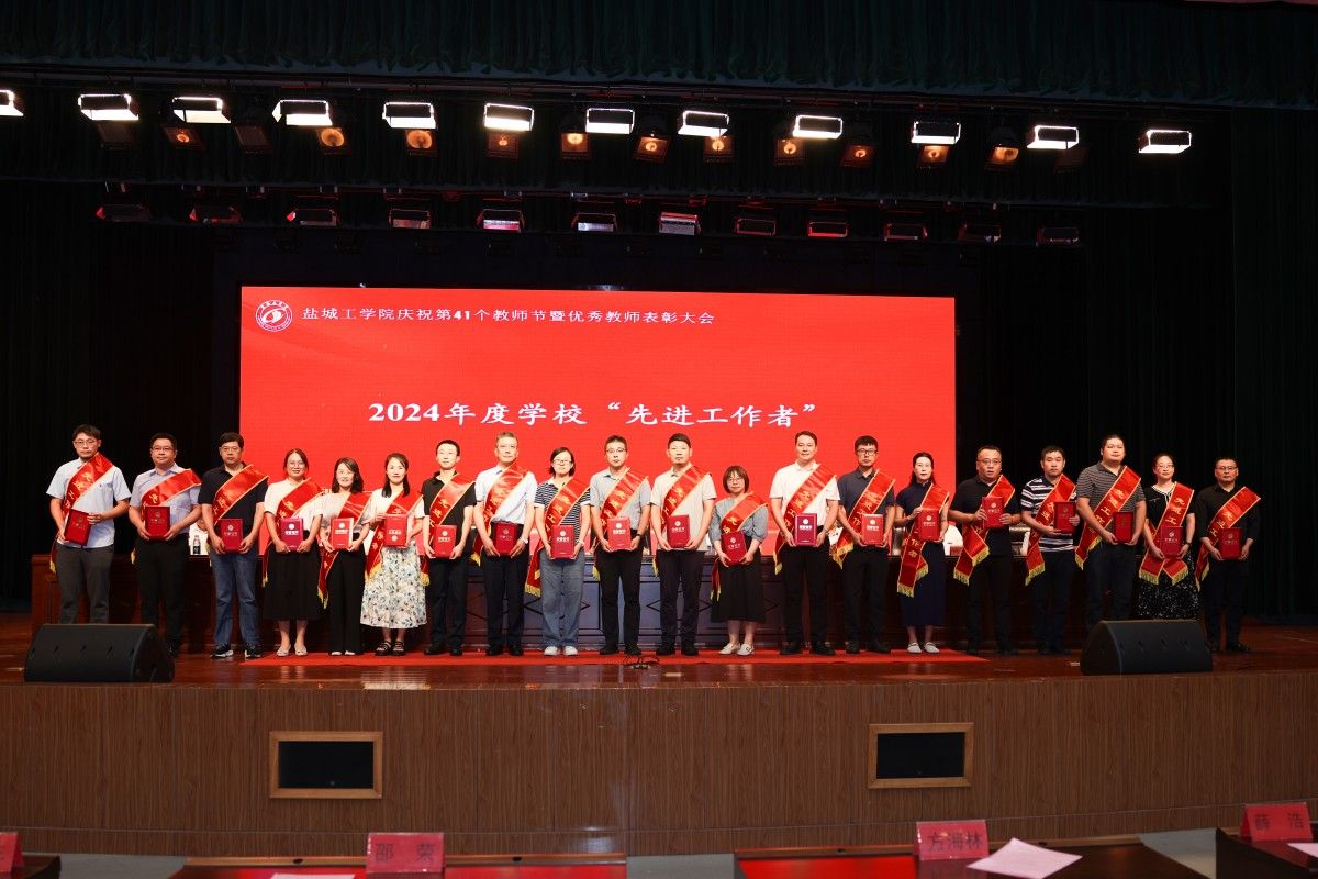 会议对全国高校“双带头人”教师党支部书记“强国行”专项行动团队、全省高校“双带头人”教师党支部书记“强国行”专项行动团队、2023-2024年度江苏高校党建工作创新案例、首批省级大学生企业实习实训基地、江苏省模范教师、第五届江苏省高校教师教学创新大赛获奖、2025年江苏省高校微课教学比赛获奖、第五届全省高校青年教师教学竞赛获奖、第七届中国青年志愿服务项目大赛获奖、江苏“十四五”普通高等教育本科省级规划教材、第二批“十四五”职业教育江苏省规划教材、2024年度江苏省研究生优质教学资源、江苏省普通本科高校课程思政典型案例、江苏省第二届高等学校劳动教育优秀实践项目、江苏省2024年实践教学改革创新优秀案例、2024-2025学年国家级学科竞赛优秀指导教师、硕士研究生省级以上竞赛获奖优秀指导教师、江苏省优秀硕士学位论文优秀指导教师、江苏省本科优秀毕业设计(论文)优秀指导教师、盐城市产业强市先进个人、盐城市绿色低碳发展先锋奖先进个人、学校2024年度优秀理工类高层次项目、学校2024年度优秀文科高层次项目、学校2024年度优秀文科科研创新团队、学校2024年度优秀文科省部级基地、学校2024年度优秀服务地方优秀智库、2024年度学校“先进集体”、2024年度学校“教学工作先进集体”、2024年度学校“优秀校级科研机构”、2024年度学校“先进工作者”、2024-2025学年学校“优秀教师”、2023-2024学年学校“最受学生欢迎的教师”、2024年度学校“优秀教务工作者”、2024年度学校“优秀辅导员”等进行表彰。校领导为获奖的集体和教师代表颁奖。