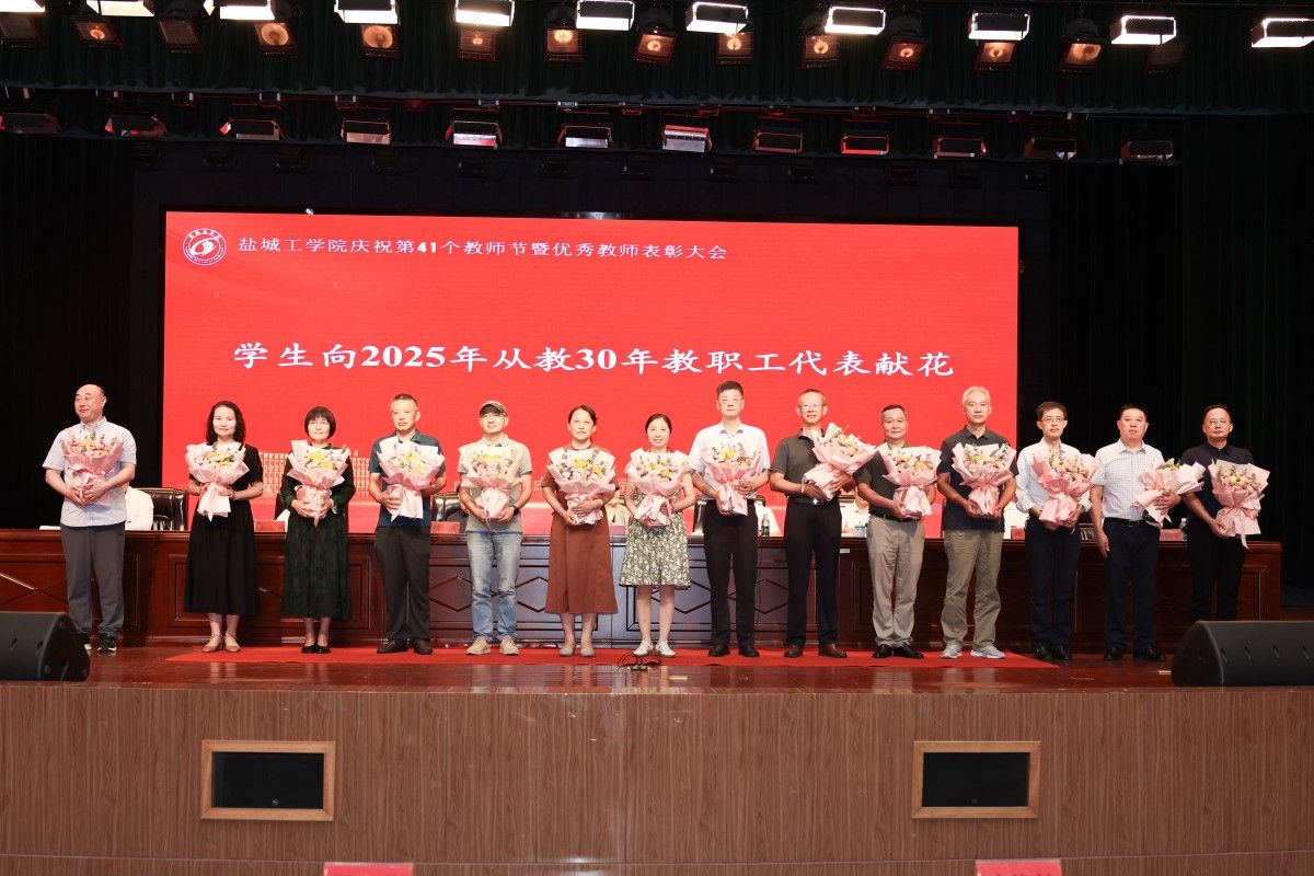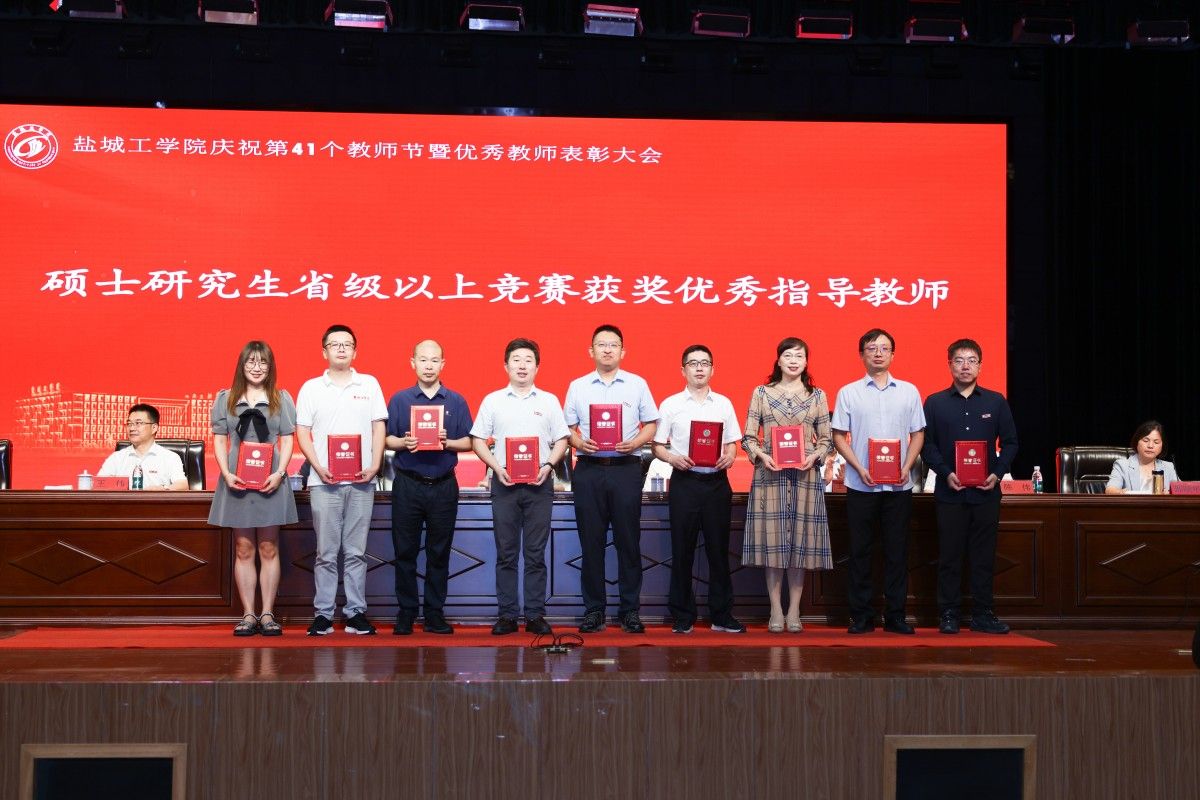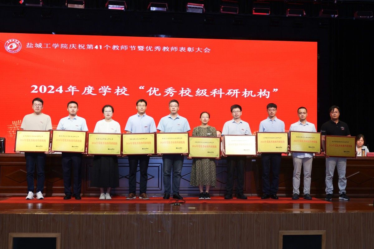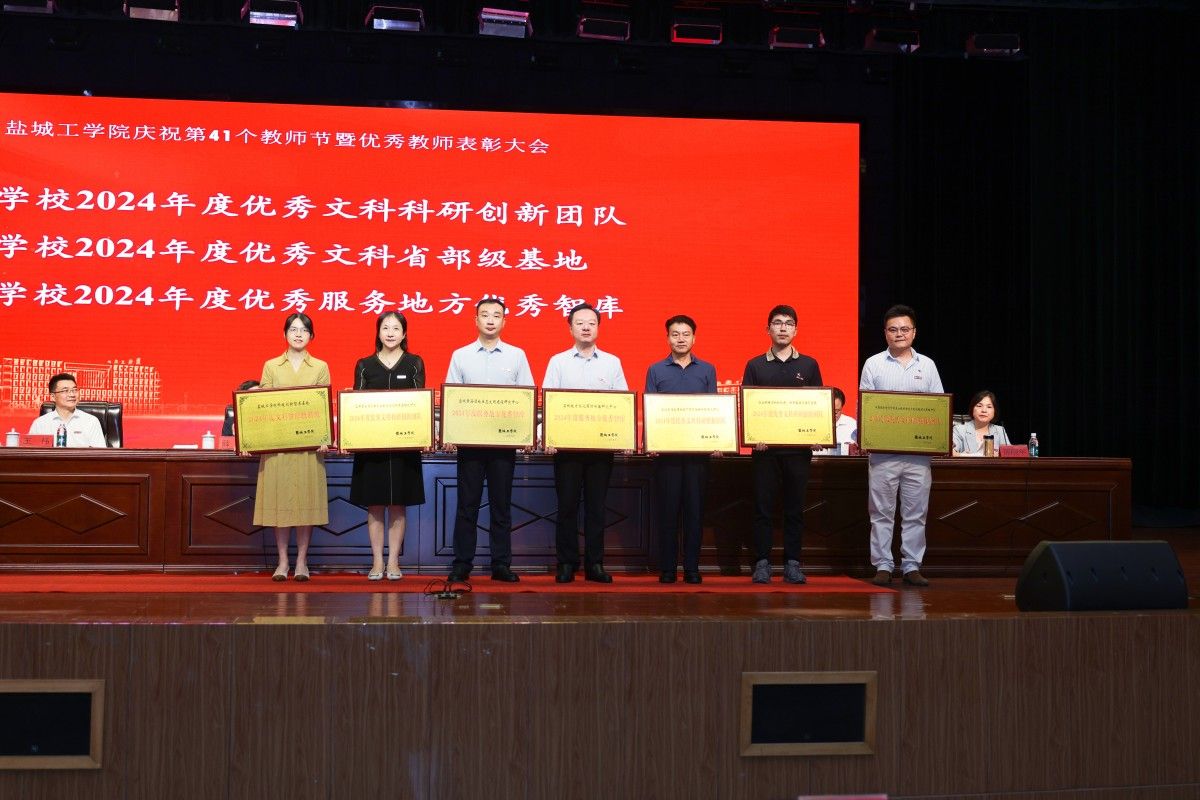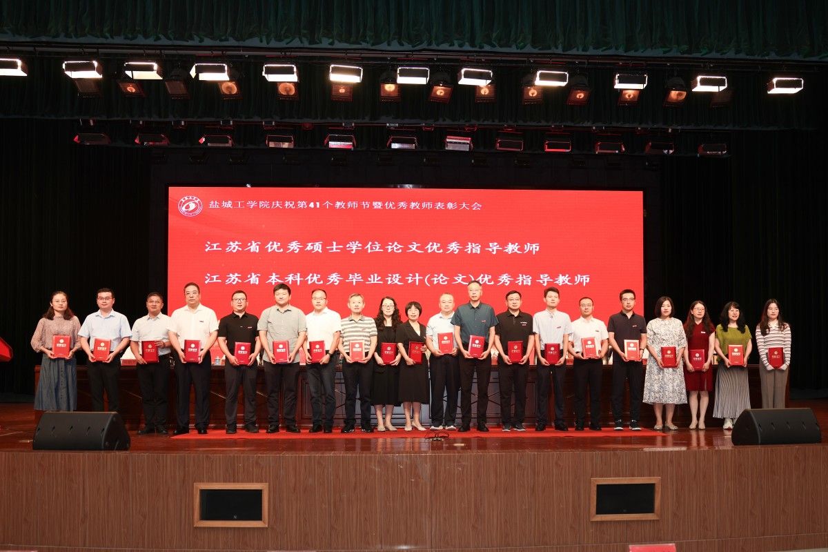会议对全国高校“双带头人”教师党支部书记“强国行”专项行动团队、全省高校“双带头人”教师党支部书记“强国行”专项行动团队、2023-2024年度江苏高校党建工作创新案例、首批省级大学生企业实习实训基地、江苏省模范教师、第五届江苏省高校教师教学创新大赛获奖、2025年江苏省高校微课教学比赛获奖、第五届全省高校青年教师教学竞赛获奖、第七届中国青年志愿服务项目大赛获奖、江苏“十四五”普通高等教育本科省级规划教材、第二批“十四五”职业教育江苏省规划教材、2024年度江苏省研究生优质教学资源、江苏省普通本科高校课程思政典型案例、江苏省第二届高等学校劳动教育优秀实践项目、江苏省2024年实践教学改革创新优秀案例、2024-2025学年国家级学科竞赛优秀指导教师、硕士研究生省级以上竞赛获奖优秀指导教师、江苏省优秀硕士学位论文优秀指导教师、江苏省本科优秀毕业设计(论文)优秀指导教师、盐城市产业强市先进个人、盐城市绿色低碳发展先锋奖先进个人、学校2024年度优秀理工类高层次项目、学校2024年度优秀文科高层次项目、学校2024年度优秀文科科研创新团队、学校2024年度优秀文科省部级基地、学校2024年度优秀服务地方优秀智库、2024年度学校“先进集体”、2024年度学校“教学工作先进集体”、2024年度学校“优秀校级科研机构”、2024年度学校“先进工作者”、2024-2025学年学校“优秀教师”、2023-2024学年学校“最受学生欢迎的教师”、2024年度学校“优秀教务工作者”、2024年度学校“优秀辅导员”等进行表彰。校领导为获奖的集体和教师代表颁奖。