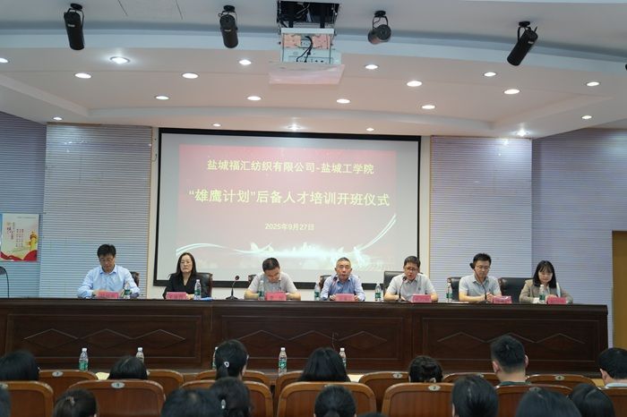 为深化产教融合协同育人,精准对接纺织行业人才需求,激励青年学子勤奋钻研,9月27日,贝博与盐城福汇纺织有限公司联合举办 “盐城福汇”企业奖学金签约仪式暨企业“雄鹰计划”后备人才综合能力培训开班仪式在土木馆报告厅举行。党委常委、副校长王伟出席签约仪式。福田实业(集团)有限公司副总裁兼盐城福汇纺织有限公司董事长、总经理李刚,盐城福汇纺织有限公司副总经理孔红岗、徐建国,贝博纺织服装学院党总支书记宋孝浜、院长王春霞,副院长陆振乾,校友办副主任曹玉娟,以及“雄鹰计划”后备人才培训的学员、教师代表、学生代表等60余人参加。
