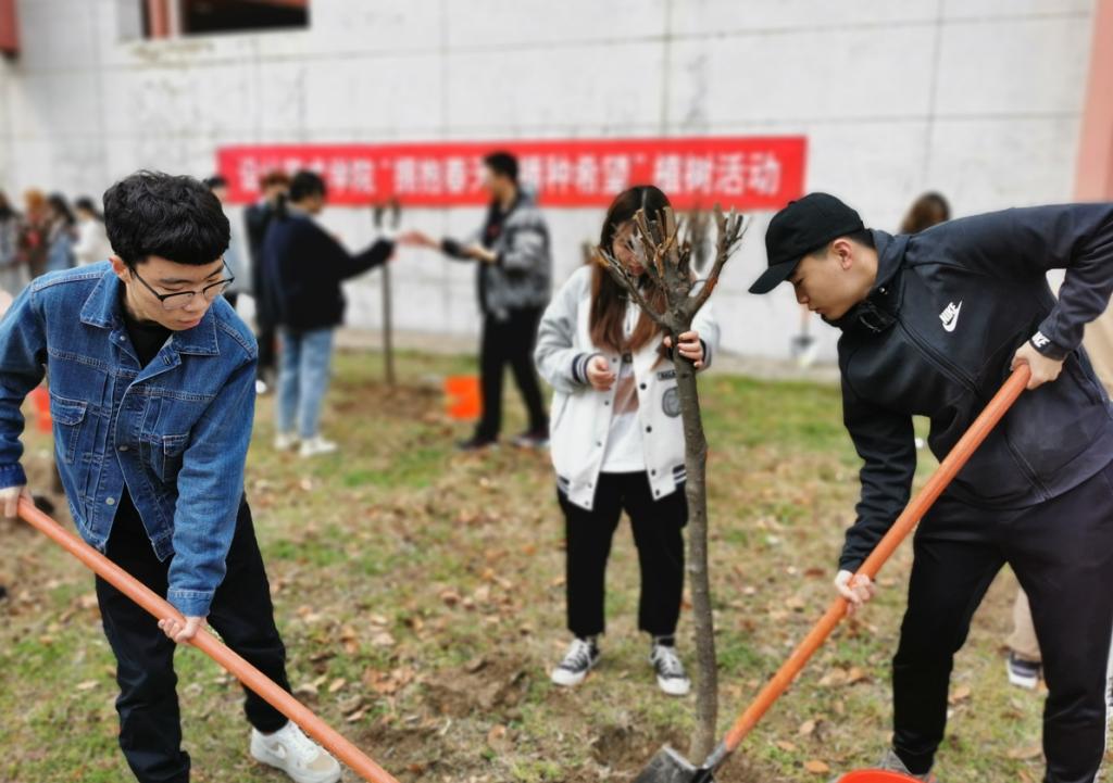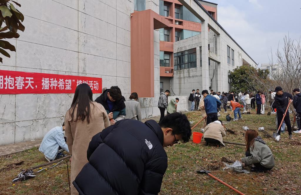 3月12日,设计艺术学院师生在南校区润美楼前开展“拥抱春天,播种希望”义务植树活动。学院通过前期宣传发动、民主征集,选择紫叶李作为栽种树木,寓意“桃李满天下”。学院学工办的教师、学生会和28个班级参加植树活动。