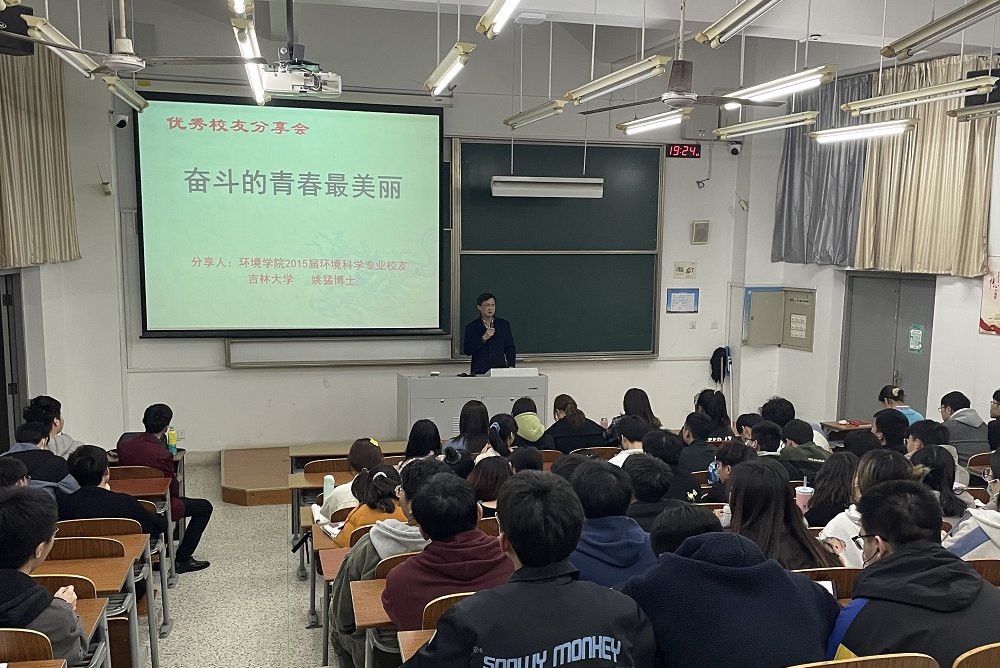 3月30日晚,环境学院在北校区知达楼C202教室举办“奋斗的青春最美丽”主题分享会。贝博2015届环境科学专业校友、吉林大学姚猛博士主讲,学院党总支副书记周政主持,学院辅导员和18、19、20级同学代表等150多人参加。