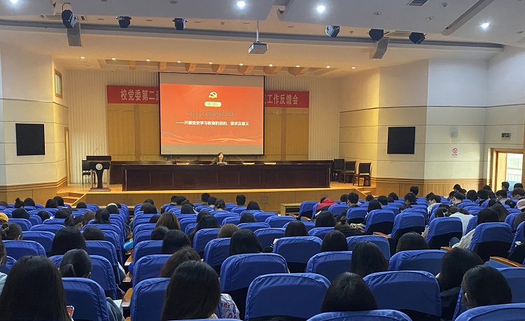 侯慧艳以“学党史,强信念,奋力开启全面建设社会主义现代化国家新征程”为题,通过“为什么要学习党史”、“党史学习学什么”、“深刻理解六大重点目标”、“学懂、弄懂、做实习近平新时代中国特色社会主义思想”和“立足本省、本市、本校实际学习党史”等五个问题系统阐述了党史学习的重要内涵和具体内容,针对党史学习理清了思路、划出了重点。她指出,学好党史,才能接好前辈的接力棒,承担未来的重任;学好党史,才能继承光荣传统,传承红色基因;学好党史,才能汲取理想信念的力量,不忘初心、牢记使命。侯慧艳提出,党史学习过程中,要深入了解中国特色社会主义的理论体系、制度和文化,深化对唯物史观的理解和运用,要立足学校发展实际开展各项学习活动。