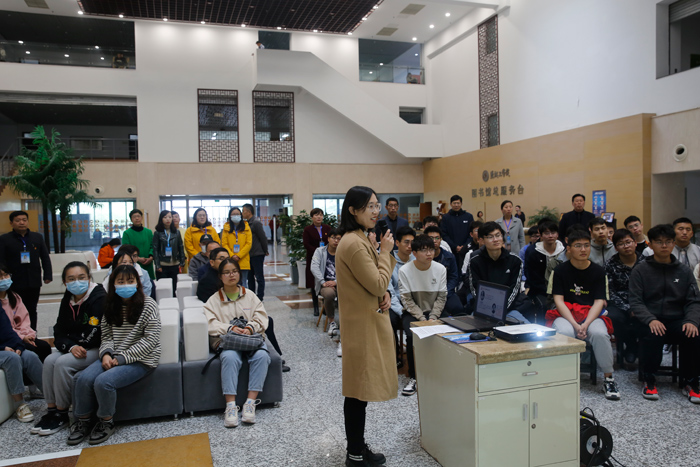 简短的启动仪式后,开始了图书馆与机械优集学院党委联合举办“阅百年历程,读红色经典;讲党史故事,传精神力量”读书交流活动。机械学院顾妍、王新霖、彭启明3位研究生同学,向学弟、学妹们讲述了毛泽东诗词《沁园春·雪》,由田汉作词、聂耳作曲的《义勇军进行曲》创作背后的故事,以及中国共产党领导的红军长征中半根皮带的故事。他们每人在相关专业老师的指导下,查阅了大量党的图书资料,精心制作PPT,运用音频、视频等设计,每人用15分钟,分别讲述了党史中的小故事,引领同学们阅读党史,熟悉红色经典,传递精神力量。