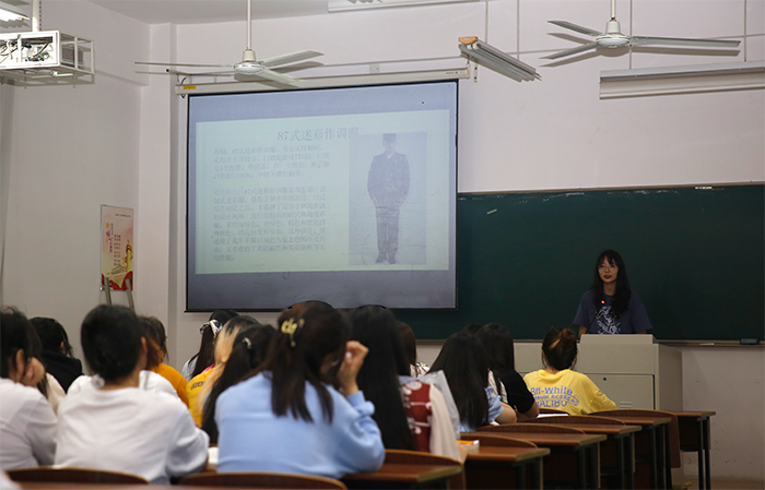 “军服是军人的外在标志,是国威、军威的象征。我们在看军装的时候,不能仅关注它的款式和颜色,更应该认识到它所代表的信仰和更深层次的意义。”5月10日晚,在南校区润美楼B301教室不时传来一阵阵掌声,原来是设计艺术学院B服装191、192班正在上一堂特殊的思政课。在这堂《毛泽东思想与中国特色社会主义理论体系概论》课中,学生不再是讲台下被动的听众,而是走上讲台的汇报者,是翔实资料背后的搜集者。