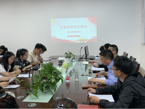6月3日晚,经管学院在南校区仁和楼B202会议室召开预备党员转正答辩会。学院党委副书记周旺基和学生一、二、三支部书记担任评委,29名预备党员同志参加。
