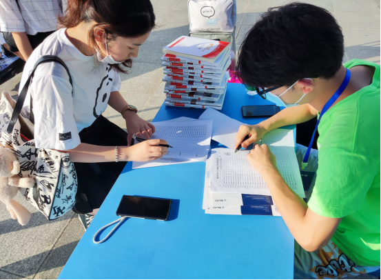 志愿者耐心为新生办理报道手续