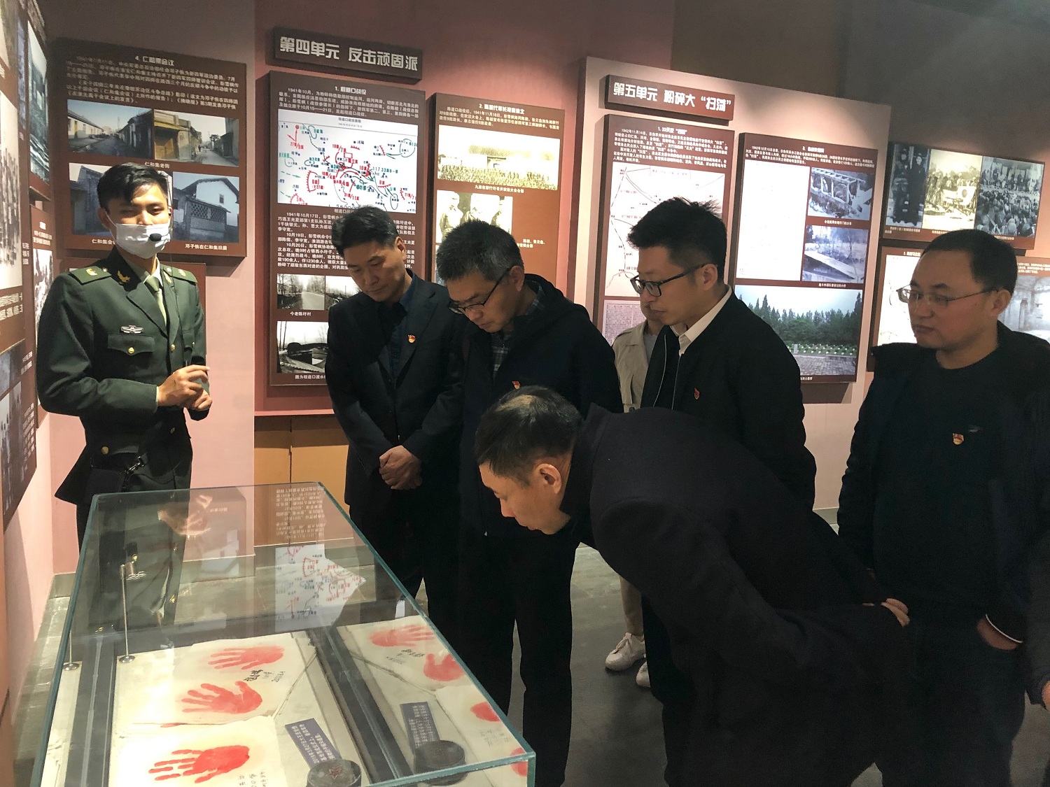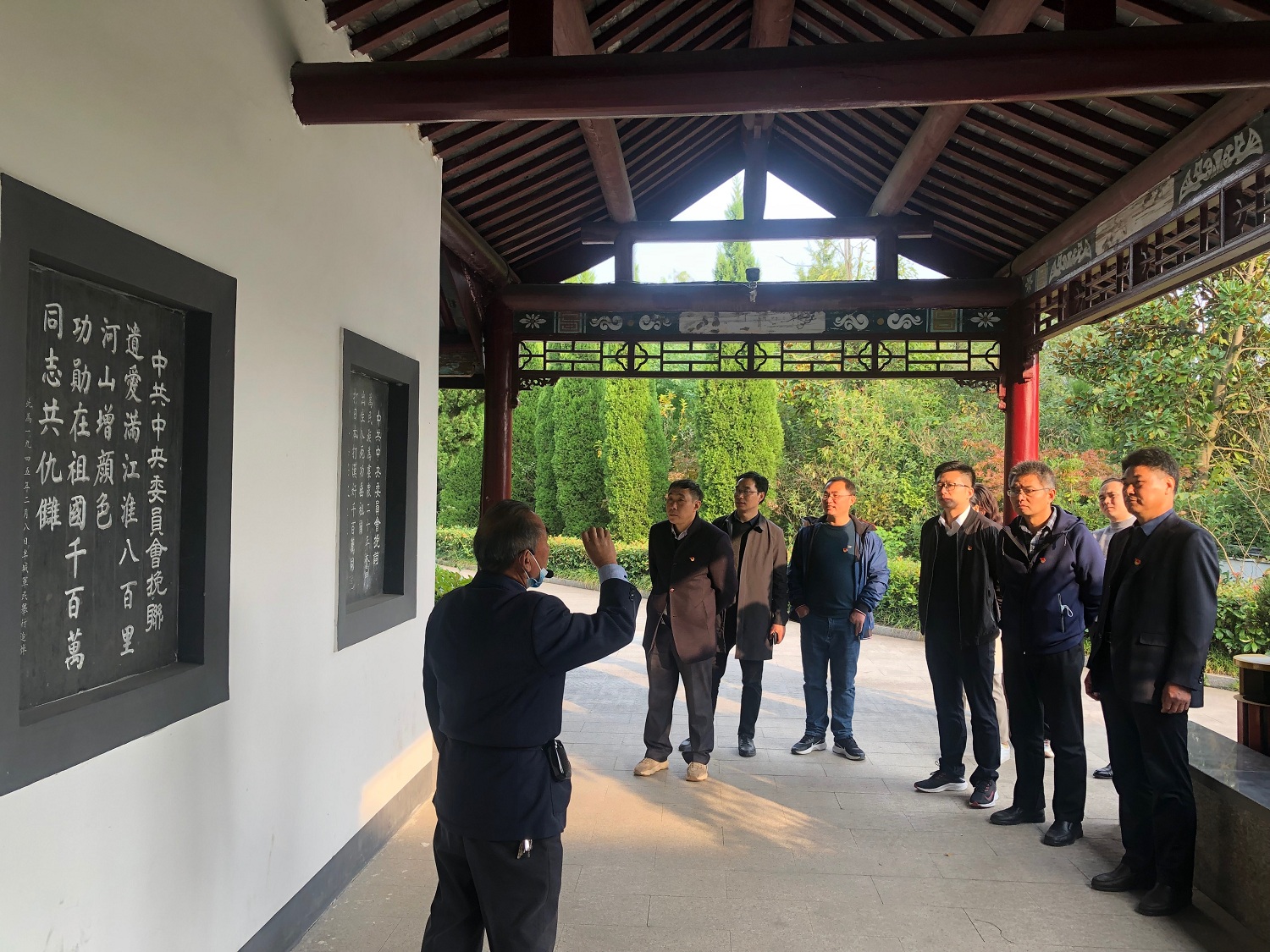 泗洪县大王庄位于洪泽湖西畔,抗战时期是淮北区党委、淮北区行政公署和新四军四师司令部所在地。在炮火纷飞的抗战时期,老一辈无产阶级革命家陈毅、彭雪枫、张爱萍、刘瑞龙、邓子恢、张震等都曾在这里指挥战斗过,当时大王庄被誉为“淮北小延安”。在基地教员的带领下,全体党员一路探寻革命先辈足迹,重温革命光辉历史,回顾了彭雪枫、邓子恢、张震等于1942年12月至1945年11月带领新四军进行抗日革命的1025个日夜。一桩桩事迹、一次次壮举,让大家深深地感受到革命先辈艰苦奋斗、努力拼搏、自立自强的精神,深刻感受到了浓厚的红色革命文化氛围,以及广大人民群众无私奉献的伟大精神。