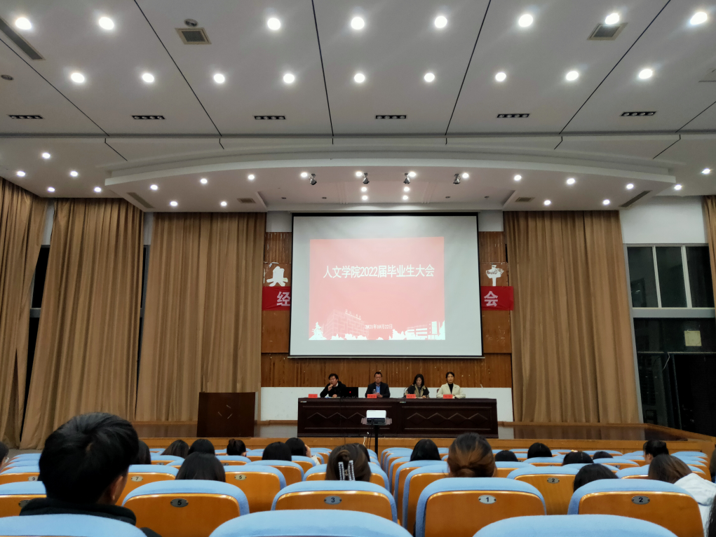 为促进学院就业工作有序进行,加强毕业生安全教育,10月22日晚,人文社会科学学院在南校区仁和楼报告厅召开2022届毕业生大会。学院党总支书记何登溢、毕业班辅导员和全体2022届毕业生参加,党总支副书记姚爱华主持。