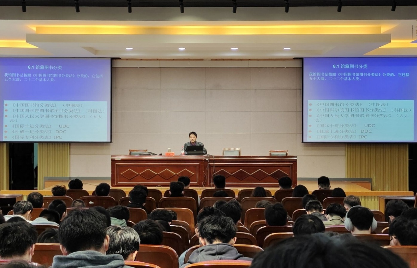 秦殿启从信息素养、大学生阅读、图书馆在大学中的地位、图书馆简介、图书馆使用指南、文明守则与借阅规则、安全信息素养、健康信息素养八个方面展开讲解。他提出了信息素养的“3个层面”和“9个要素”,同时强调图书馆在大学中的地位,图书馆是大学的三大支柱之一,是大学的信息中心和学习研究中心,被誉为大学的“心脏”。呼吁同学们充分利用图书馆,广泛地阅读,积极地利用图书馆的电子资源,用阅读改变自己人生的宽度和厚度。最后,秦殿启提醒同学们遵守学校规章制度,在图书馆文明借阅。