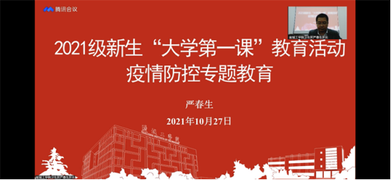 10月27日,人文学院在南校区仁和楼A304会议室运用腾讯会议形式开展2021级新生“大学第一课”教育活动,邀请校卫生所所长严春生作疫情防控专题教育,邀请图书馆办公室主任秦殿启作图书馆入馆教育。学院党总支副书记姚爱华主持,学院全体大一新生参加。