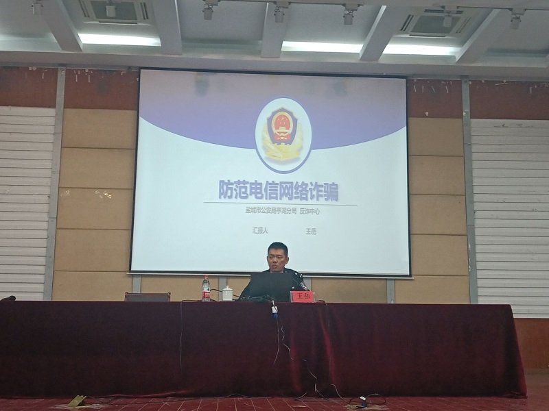 为进一步提高新生对电信网络诈骗的识别和防范能力,营造安全稳定的校园环境,11月13日,信息学院在北校区五四报告厅举办2021级新生“大学第一课”防范电信网络诈骗专题讲座,邀请盐城市公安局亭湖分局刑警支队反诈中队警官王岳主讲。学院党委副书记戴建主持,新生辅导员和2021级全体新生400多人参加。