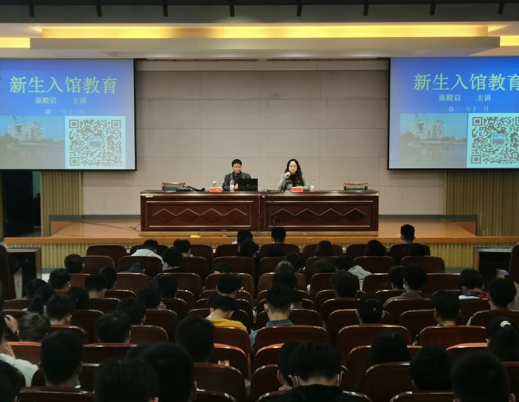 11月7日,在北校区化工楼报告厅,电气学院邀请学校图书馆办公室主任秦殿启为2021级新生作图书馆入馆教育专题讲座,电气学院党委副书记许众威主持,新生辅导员和400多名大一新生参加。