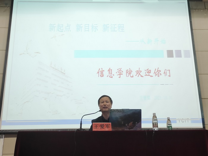 10月31日,信息学院在北校区化工楼报告厅开展2021级新生“大学第一课”主题教育,学院党委书记王爱军、院长王如刚作专题报告。学院党委副书记戴建主持,2021级全体新生参加。