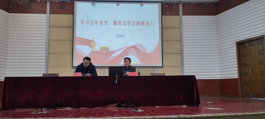 徐报喜以“争取民族独立、人民解放”和“实现国家富强、人民幸福”两大主题为主线,介绍了中国共产党在新民主主义革命时期、社会主义革命和建设时期、改革开放和社会主义现代化建设的新时期以及中国特色社会主义新时代的百年历史征程。他结合自身对党史的学习和心得体会,以鲜明的历史人物形象、生动的历史活动场景,讲述了许多革命英烈的感人故事,介绍了中华民族从站起来、富起来到强起来的伟大飞跃。他以鲜明的观点、精炼的语言,全面总结了党的百年奋斗历程中的重要启示,引导全体同学对党和国家的历史有了更深刻的理解,更清晰地感受到了百年党史丰富的经验启示和精神力量。徐报喜勉励同学们要赓续共产党人的精神血脉,积极向党组织靠拢,做信念坚定的继承人,以勤学浇筑梦想,以创造奋斗幸福。