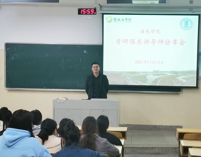11月17日下午,在北校区知行楼102和103教室,海生学院召开2022届考研俱乐部导师分享会,邀请学院田红艳、王笃军两位博士为食品和海洋专业冲刺阶段的考研学生作交流讲座。