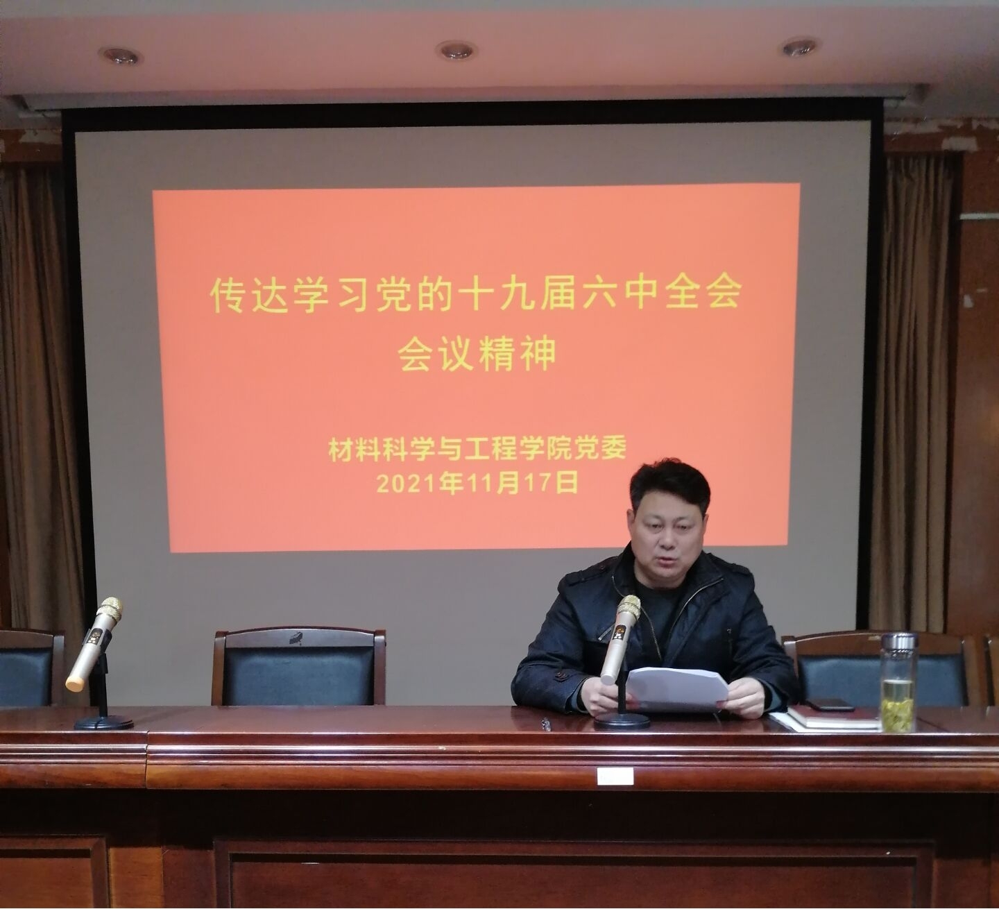 11月17日下午,材料学院召开教职工政治理论学习会,集中认真学习习近平总书记在党的十九届六中全会上的重要讲话和全会精神。会议由学院党委书记唐浩主持,院领导、各专业系(实验中心)负责人、各支部负责人、全体教职工参加了本次学习会。
