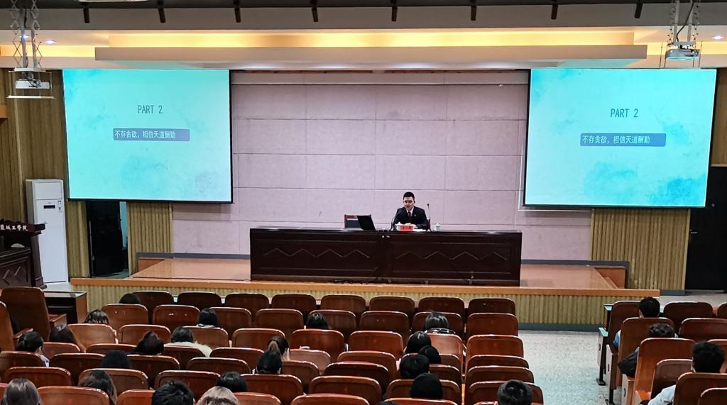 为进一步弘扬宪法精神,增强同学们的法律意识,12月5日晚,在南校区机械馆报告厅,机械优集学院联合人文学院邀请盐城市亭湖区人民法院刑庭王一晖法官作题为《珍爱青春,与法同行》的宪法教育讲座。机械优集学院学工办副主任程云庆主持,机械优集学院和人文学院主要学生干部共计两百余人聆听了报告。