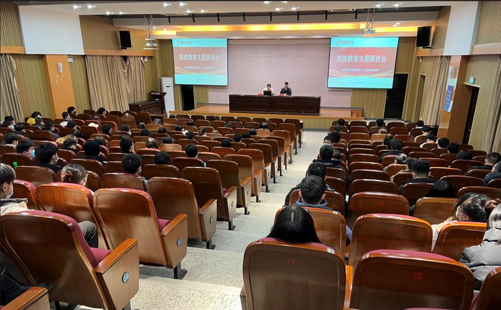 本次宪法教育讲座是机械优集学院迎接第四个“宪法宣传周”的系列活动之一,旨在进一步提高同学们的法律意识和自我防范意识,增强同学们“学法、守法、用法、尊法”的法制观念,为预防犯罪进校园夯实基础,为同学们健康成长保驾护航。