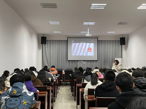 12月1日至3日晚上,学生们或在宿舍、或在教室、或在图书馆,手机、电脑等各种移动设备齐上阵,从经济、教育、医疗等多个方面进一步了解宪法条例,沐浴宪法力量,感受宪法阳光;12月1日下午,在学院会议室举办“维护宪法尊严,履行宪法义务”主题讲座,团委副书记王珂通过解读宪法、视频科普等方式,引导学生认真学习宪法,牢记宪法使命,维护宪法尊严,履行宪法义务,新生代表80余人参与。