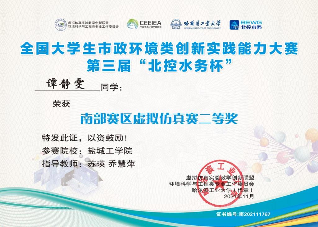 近日,全国大学生市政环境类创新实践能力第三届“北控水务杯”大赛举行,由土木工程学院给排水科学与工程专业甄树聪担任领队,苏瑛、乔慧萍、廖钰冰、王文豪等老师指导的三支参赛队伍代表贝博首次参加本次大赛,获二等奖1项、三等奖8项。