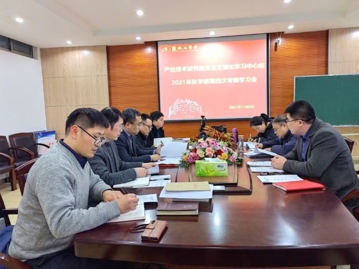 12月8日下午,在北校区知达楼AE209会议室,产业技术研究院党总支理论学习中心组举行2021年秋学期第四次专题学习会,学习贯彻党的十九届六中全会精神和《改革开放简史》。学习会由院党总支书记、院长张勤芳主持,校党委第四巡学旁听组组长孙长银、成员宋倩倩旁听指导,院党总支理论学习中心组全体成员参加。