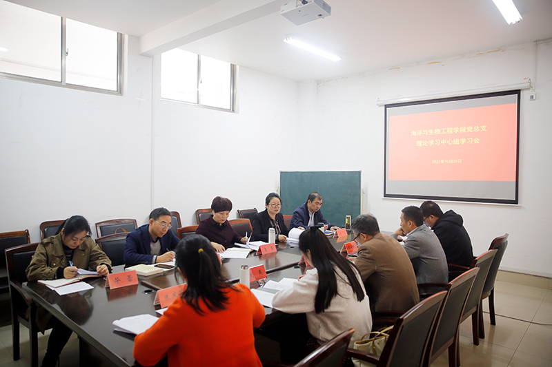 10月25日下午,在北校区教育超市四楼会议室,海生学院召开党总支理论学习中心组十月份集中学习会,校党委第三巡学旁听指导组组长高琴、成员刘燕参加。党总支书记高留才主持,院长余晓红领学,党总支中心组全体成员参加。