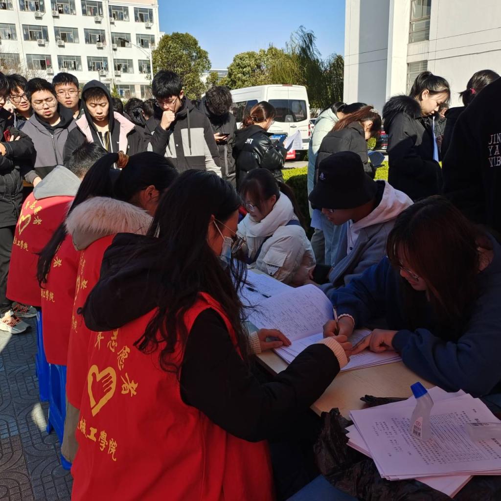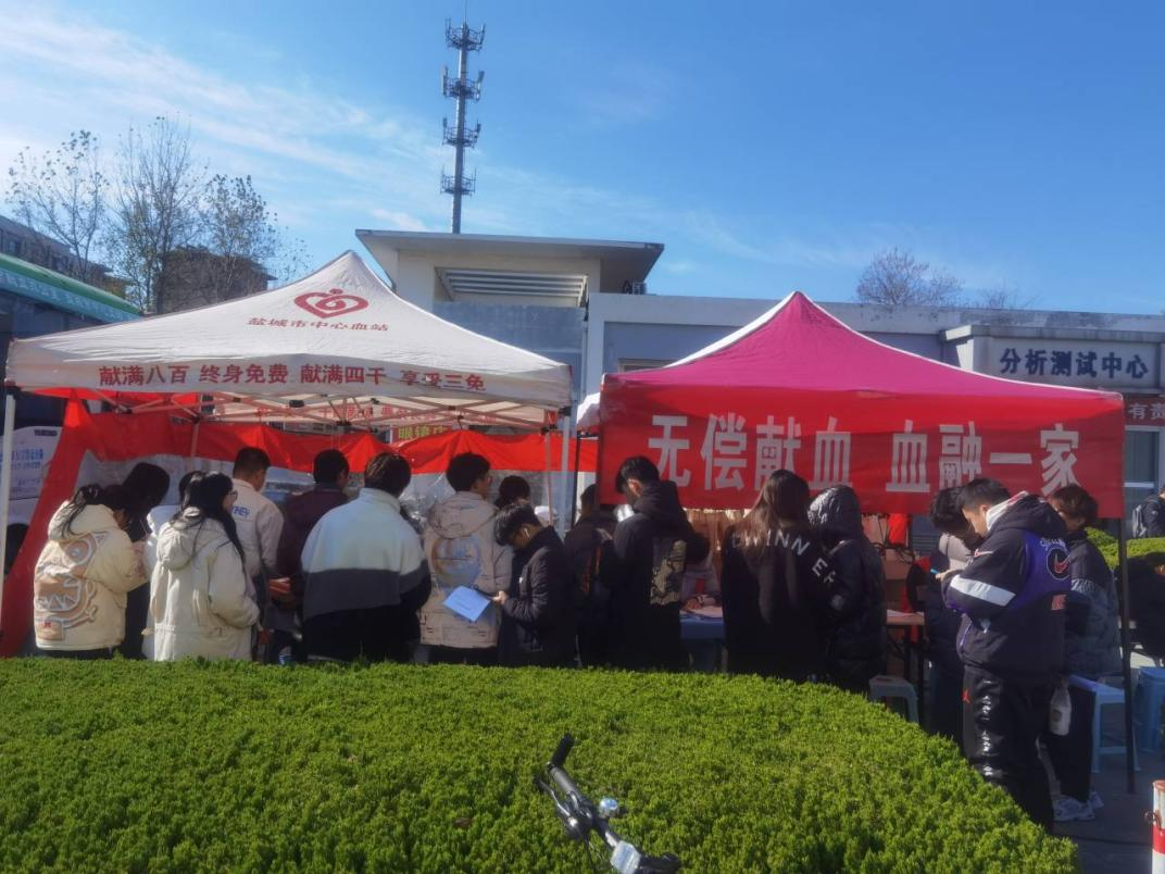 献血过程中,无偿献血的师生按照“保持距离、全程戴口罩、测量体温、健康征询及健康检查”的流程,在医务人员的指导下有序的填写资料、初筛化验和抽取血液。“螺丝钉”青年志愿者协会志愿者与盐城市中心血站工作人员在献血留观区发放献血点心礼包和《献血注意事项》书签等。