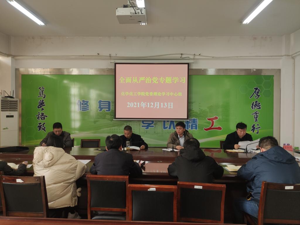 12月13日上午,在北校区化学化工学院201会议室,学院党委理论学习中心组开展全面从严治党专题学习。学院党委书记高健主持,学院党委理论学习中心组全体成员参加。