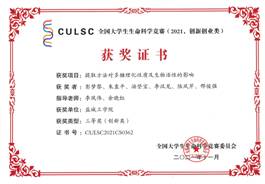 全国大学生生命科学竞赛(2021,创新创业类)由全国大学生生命科学竞赛委员会、高等学校国家级实验教学示范中心联席会及《高校生物学教学研究(电子版)》杂志社主办,扬州大学国家级生物科学与技术实验教学示范中心、扬州大学国家级生物科学与技术虚拟仿真实验教学示范中心联合承办。